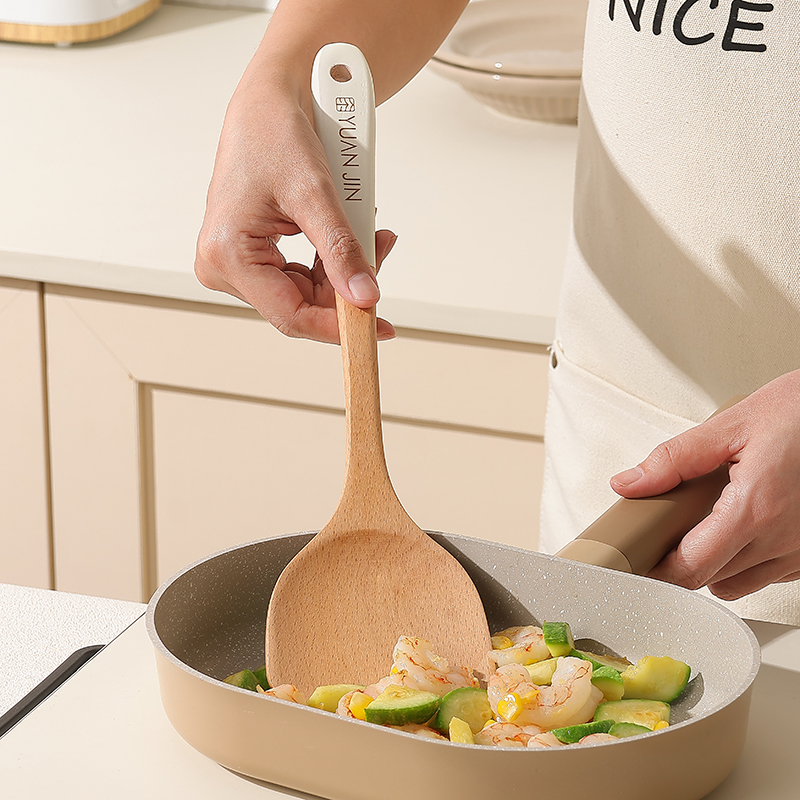 家用木铲饭勺平底锅不粘锅专用炒铲盛汤汤勺木柄炒勺家用高档精致