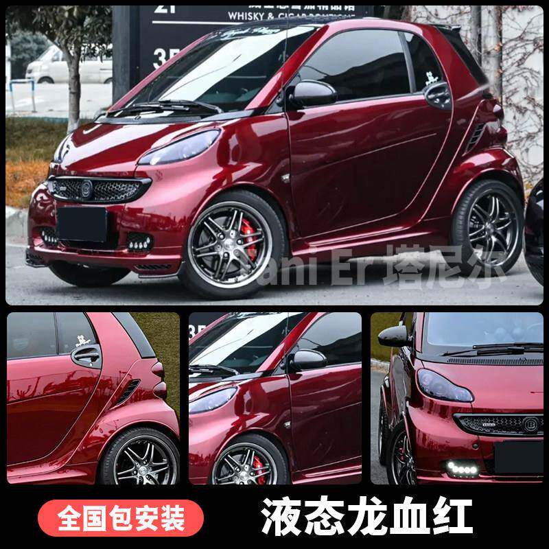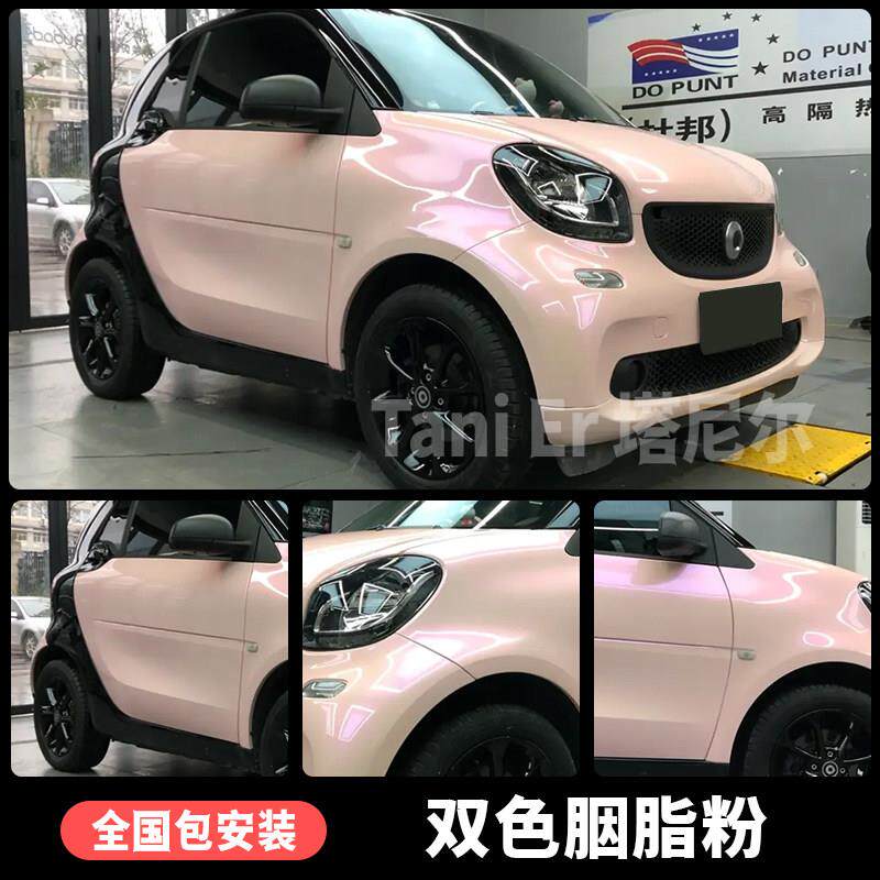 奔驰SMART汽车改色贴膜贝壳粉双色胭脂粉液态龙血红金属银车身膜