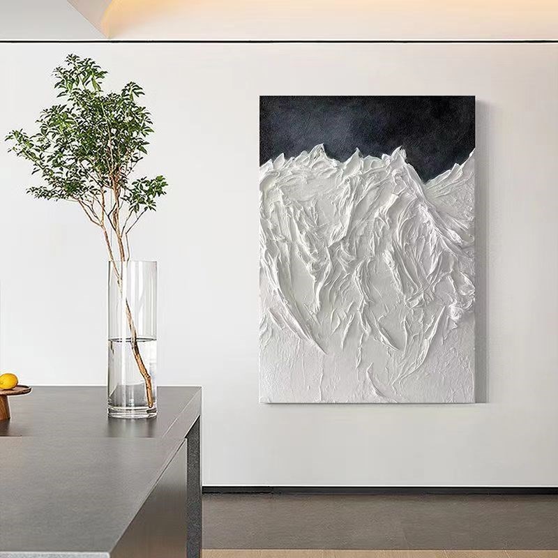 纯手绘油画 画立体l肌理极简装饰画 画侘寂风抽象石英砂石膏玄关