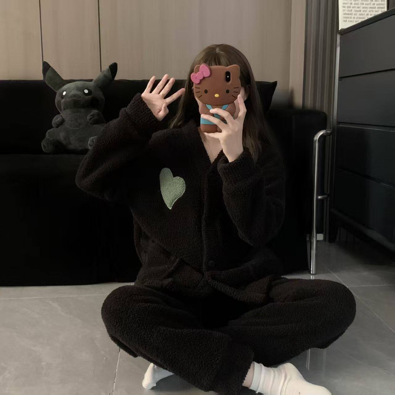 加绒加厚女款家居服珊瑚绒套装