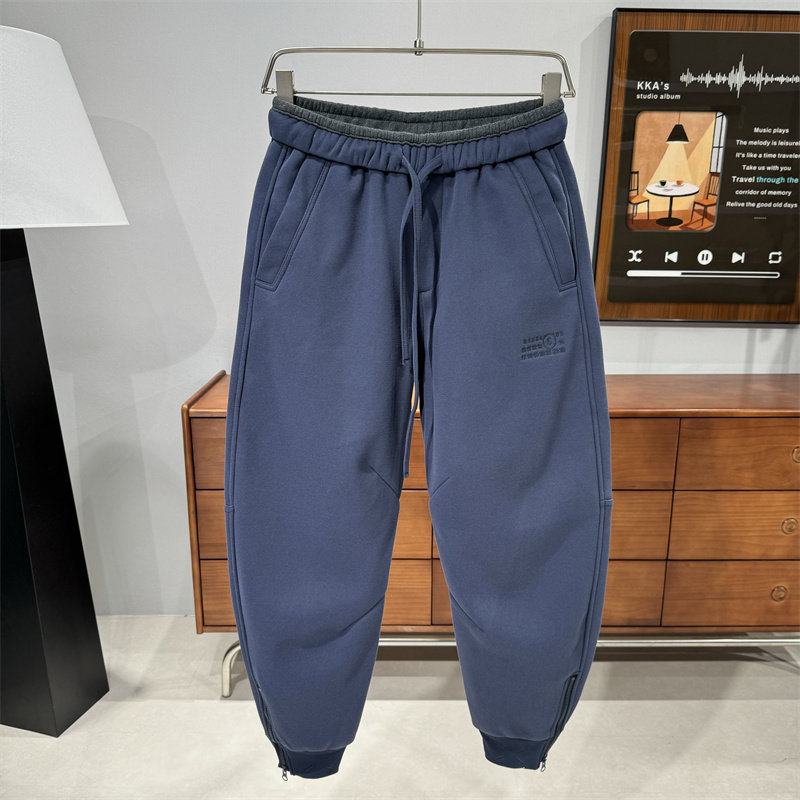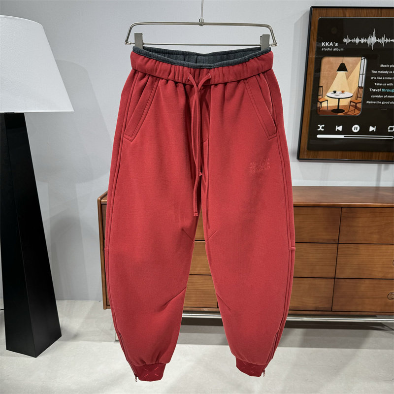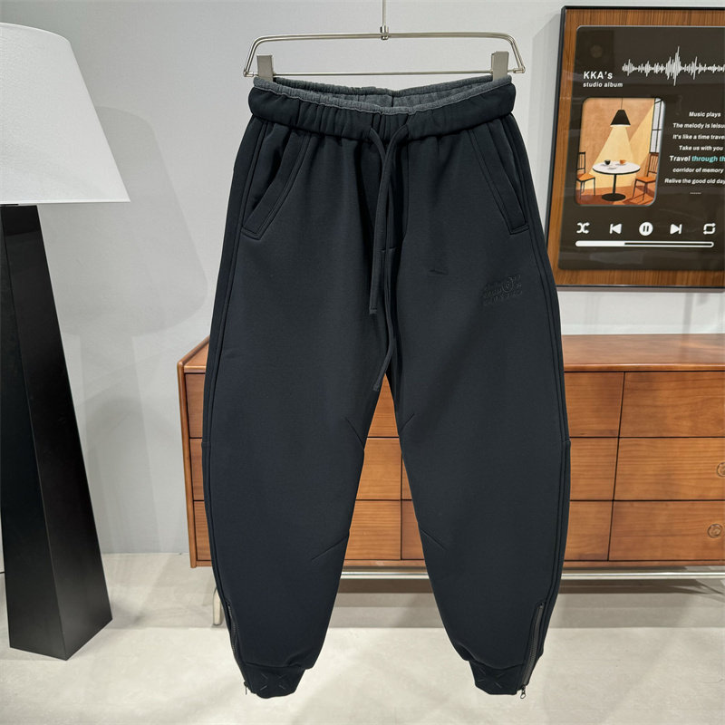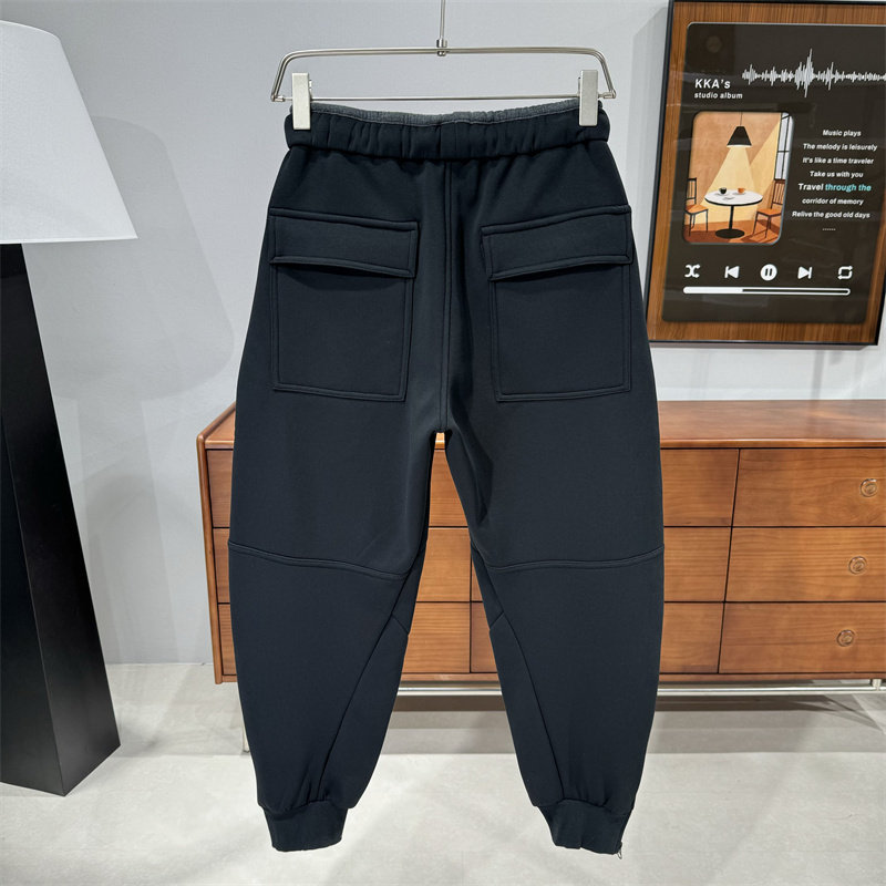 冬季加绒宽松拉链束脚卫裤男百搭抽绳休闲裤立体剪裁松紧腰运动裤
