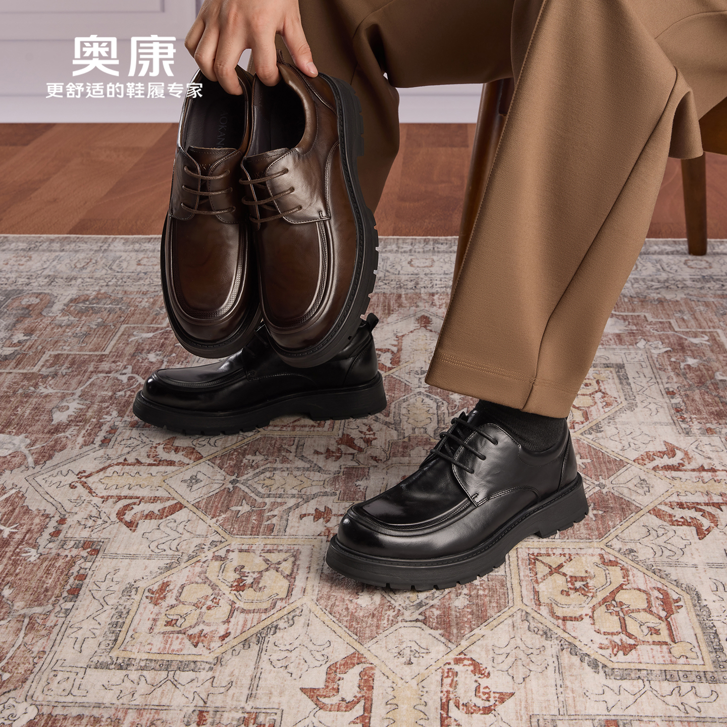 奥康 2025秋季新款男鞋商务休闲正装系带厚底增高时尚通勤皮鞋