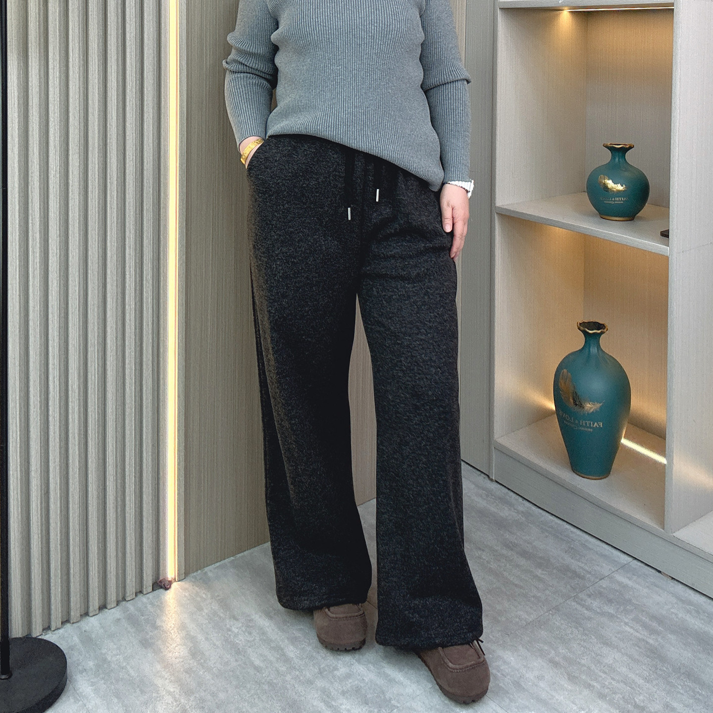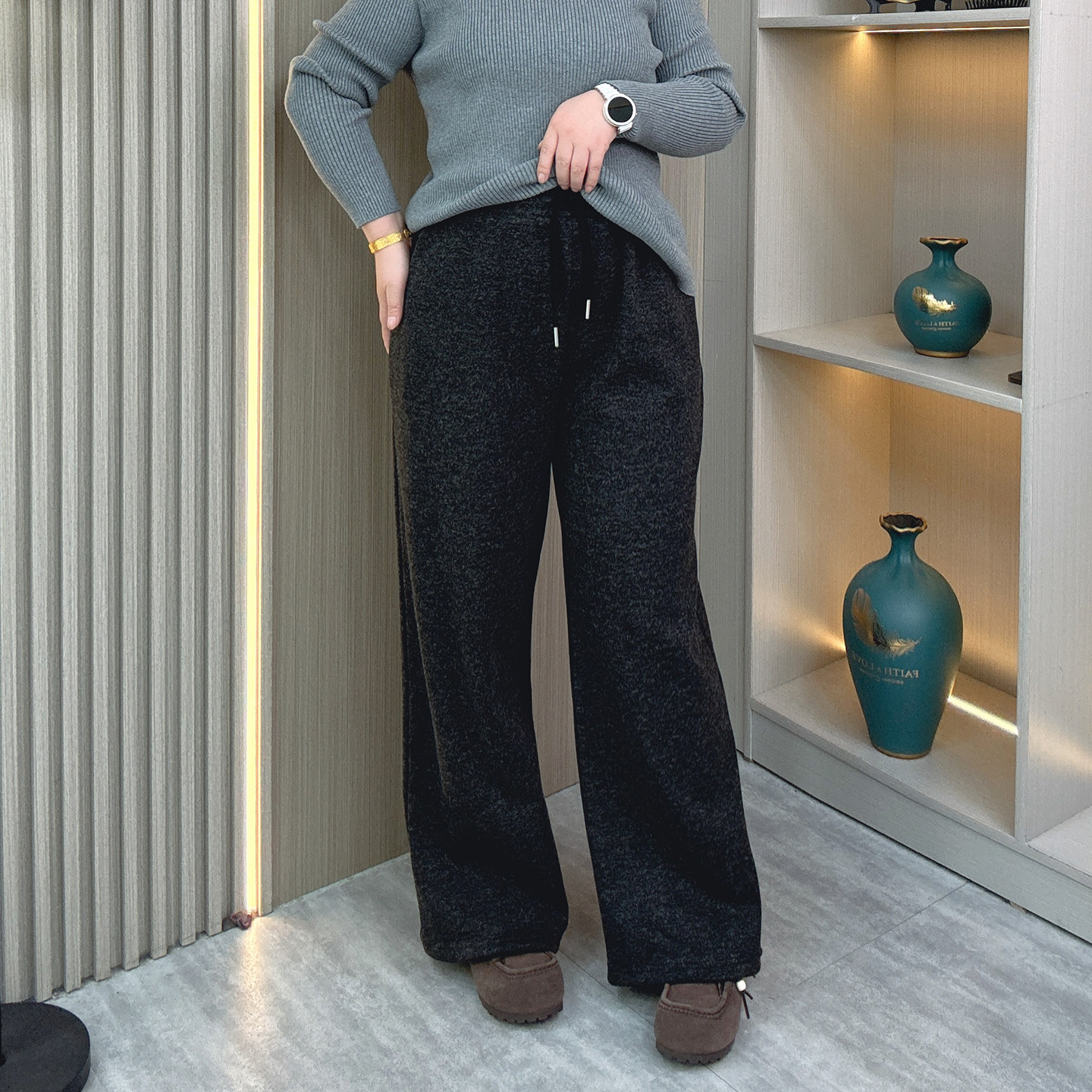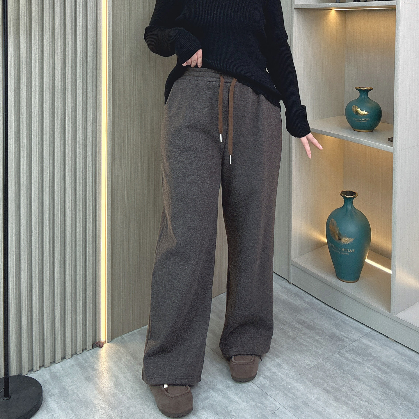 大码女装加绒毛呢阔腿裤子秋冬新款胖mm保暖显瘦休闲百搭直筒长裤
