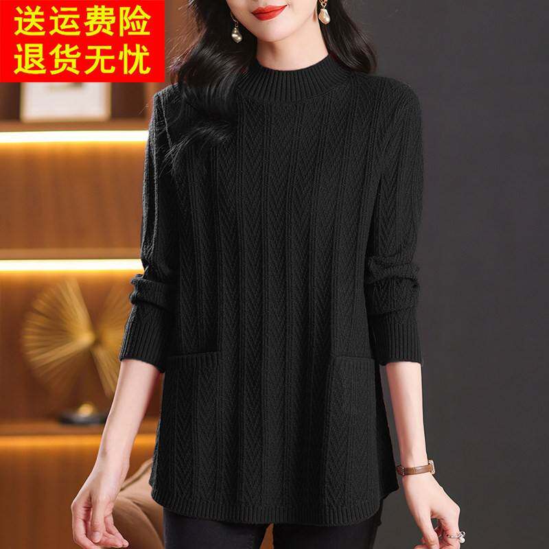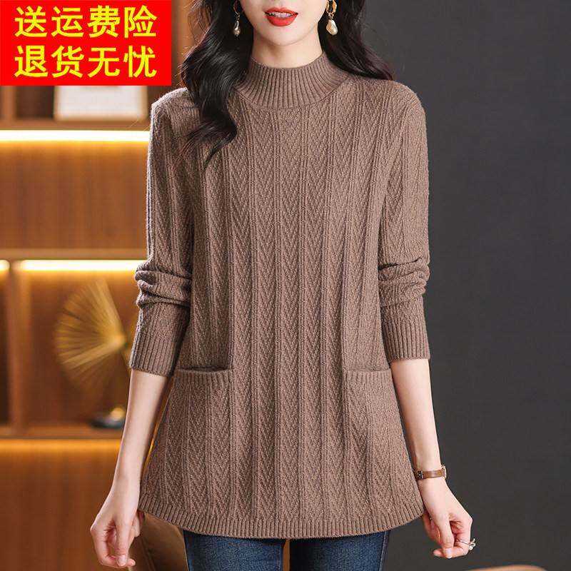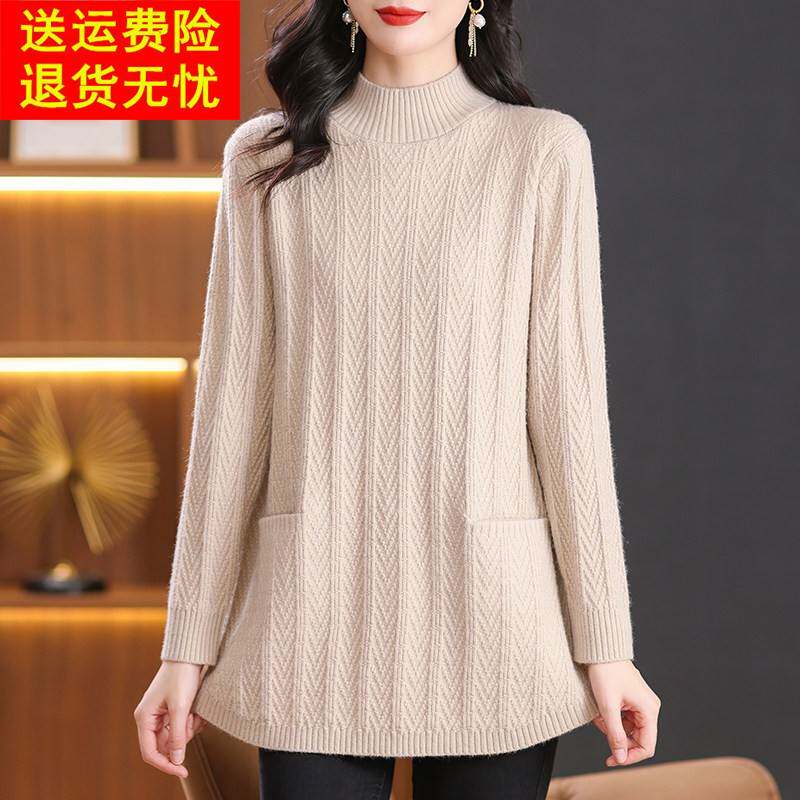 鄂尔多斯市半高领中长款女秋冬新款加厚内搭羊毛衫针织羊绒打底衫