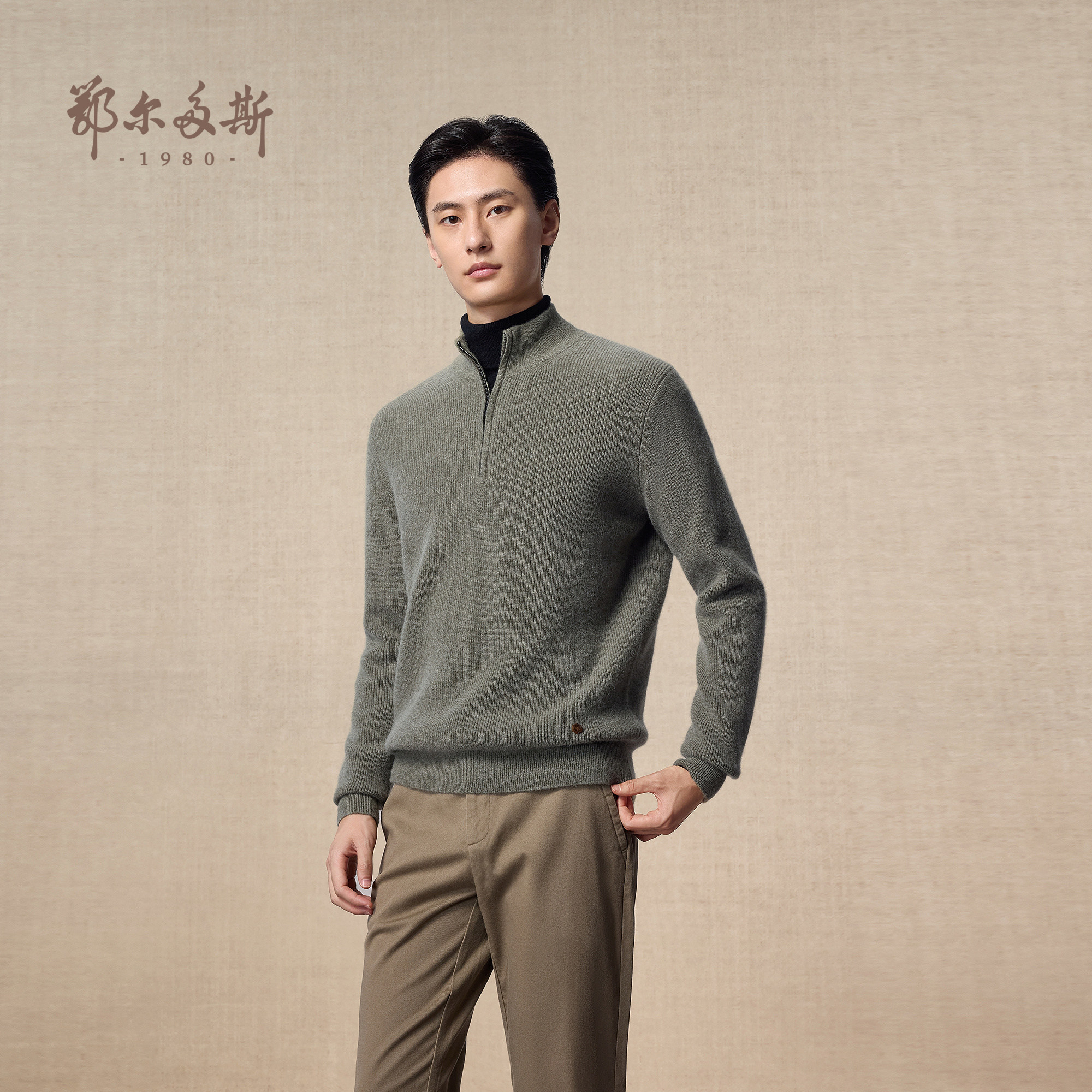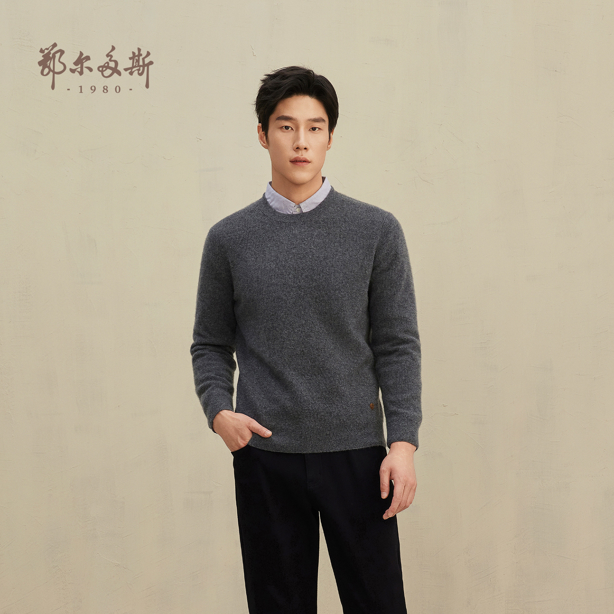 鄂尔多斯1980 男装圆领/半高领羊绒衫25年秋冬新品厚款保暖针织衫