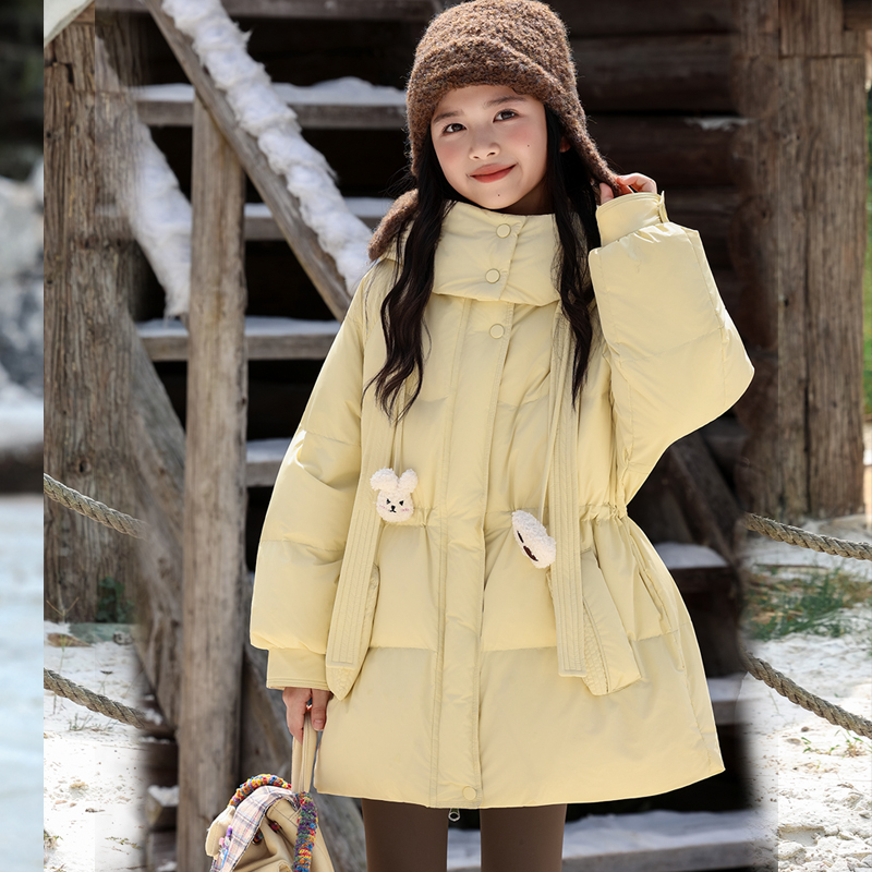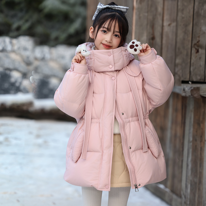 儿童羽绒服女童中长款2025新款白鸭绒中大童冬装加厚外套冬季童装