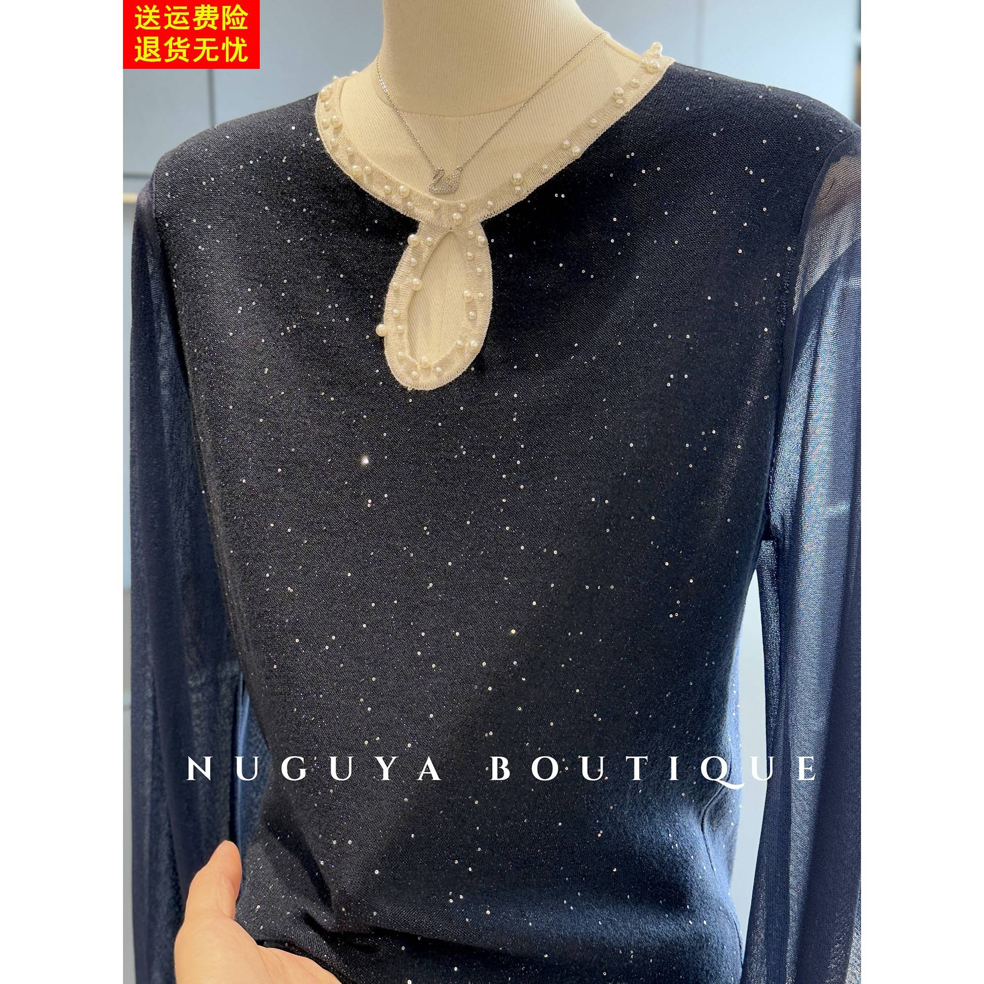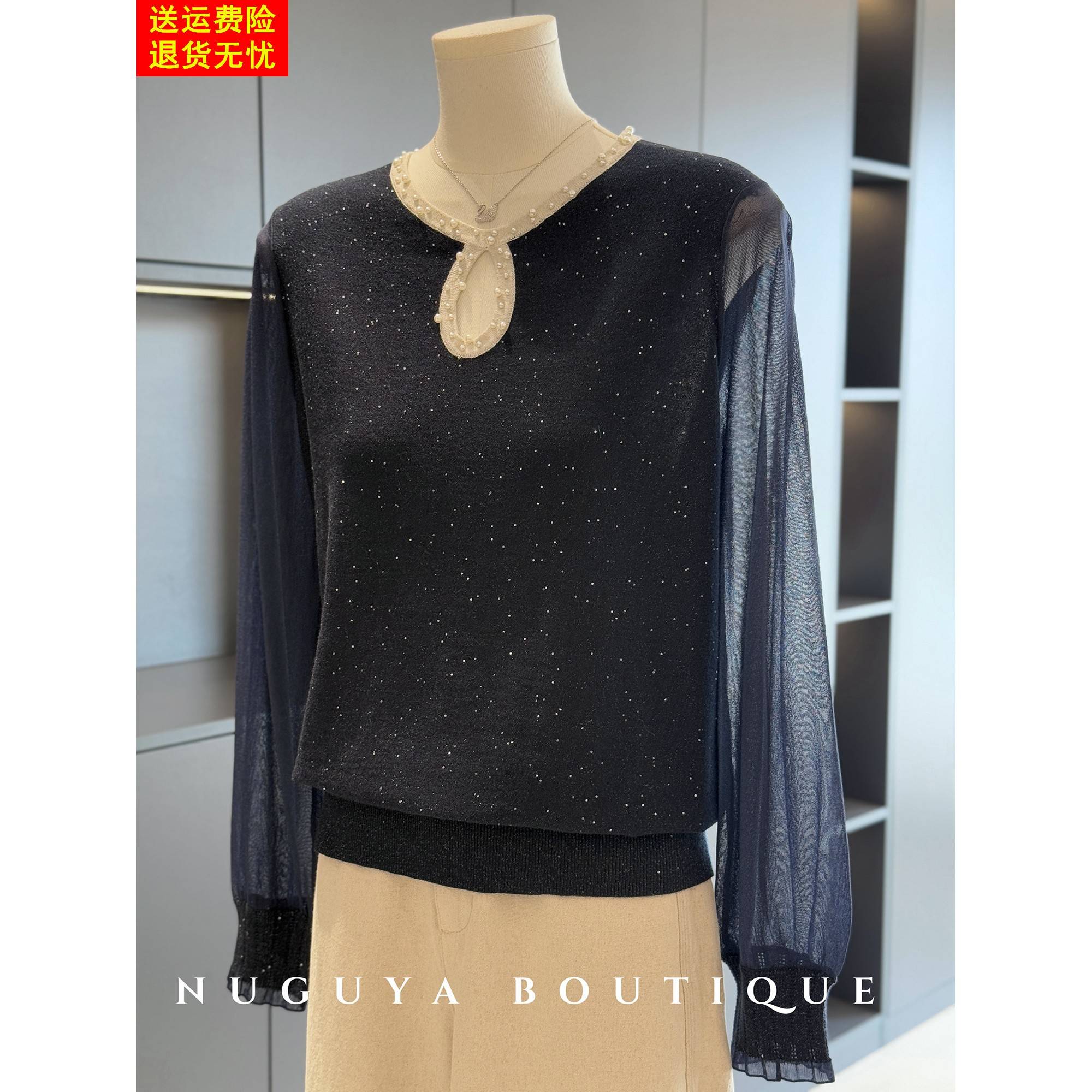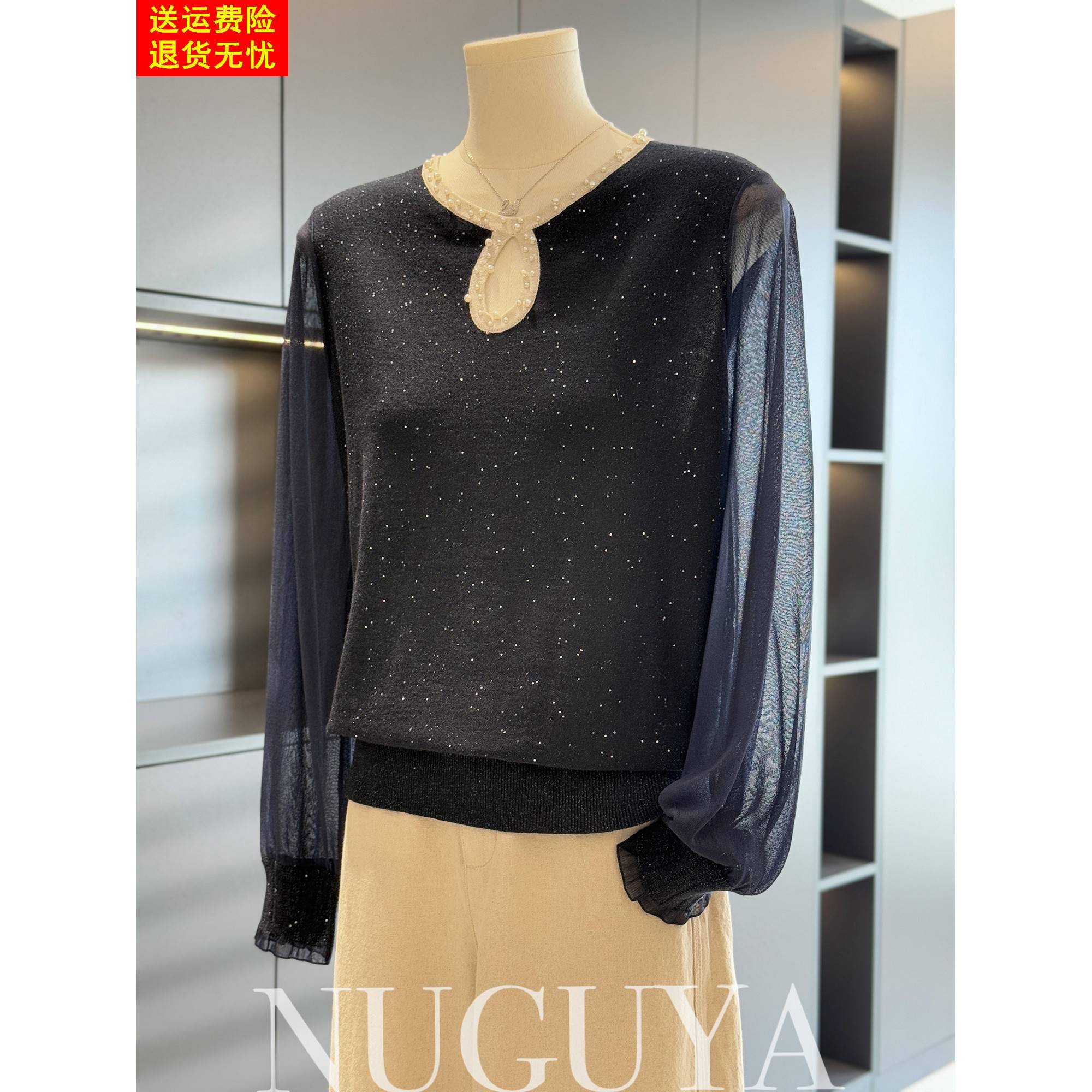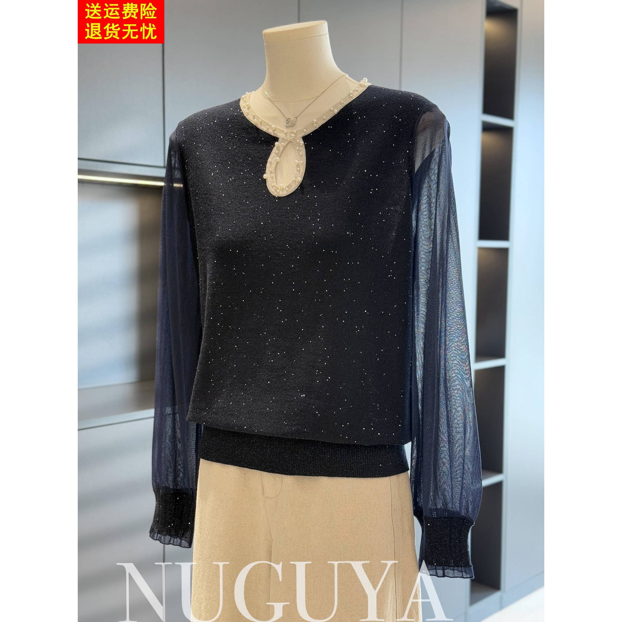 时尚洋气妈妈装雪纺拼接针织衫女秋装新款上衣气质百搭中老年小衫