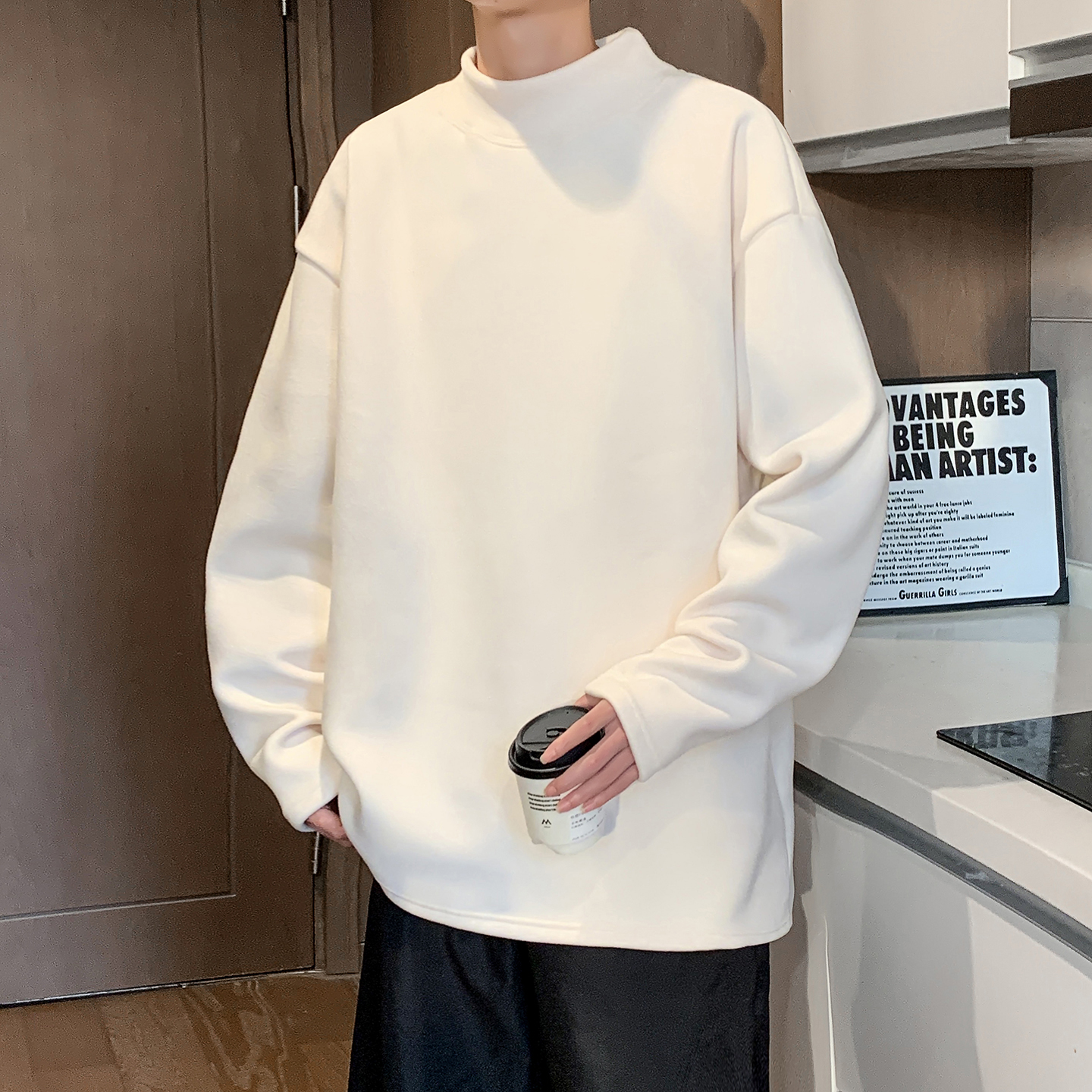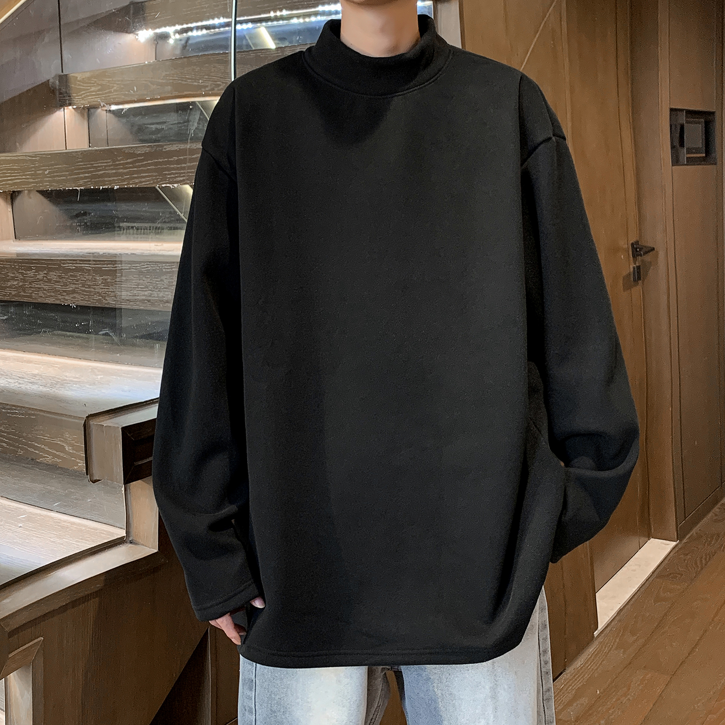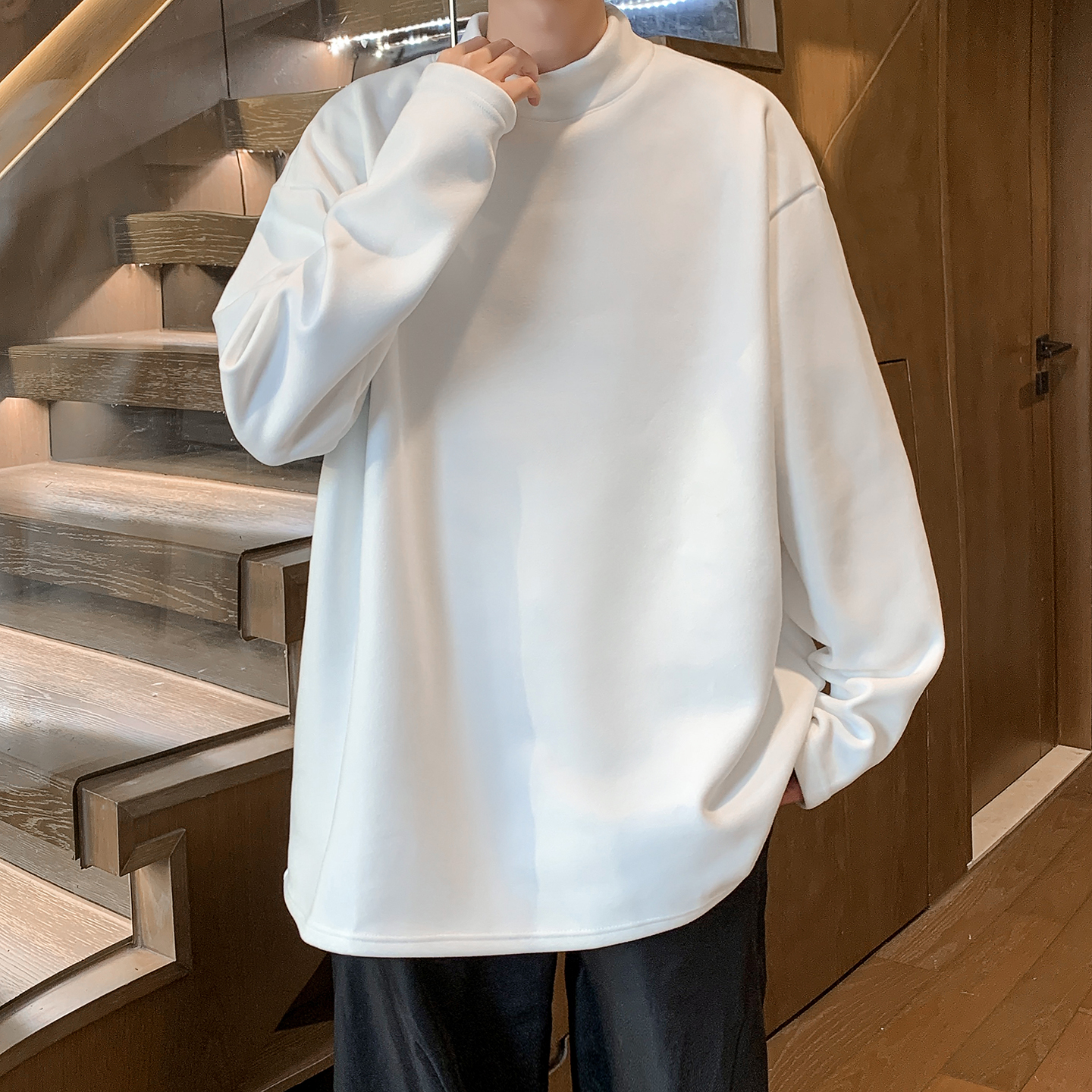 加绒厚款德绒长袖T恤男加肥加大码潮牌胖子宽松打底衫秋冬半高领