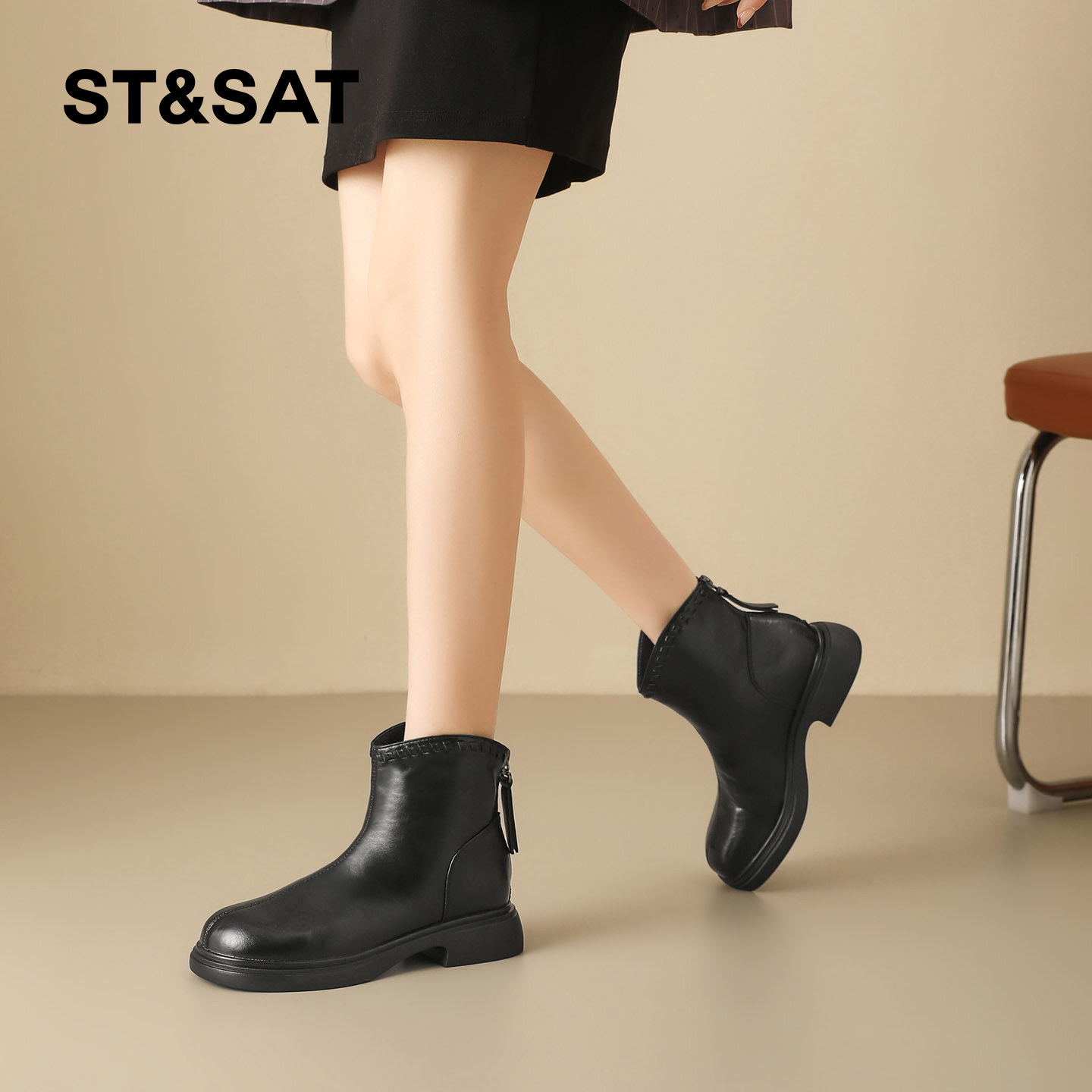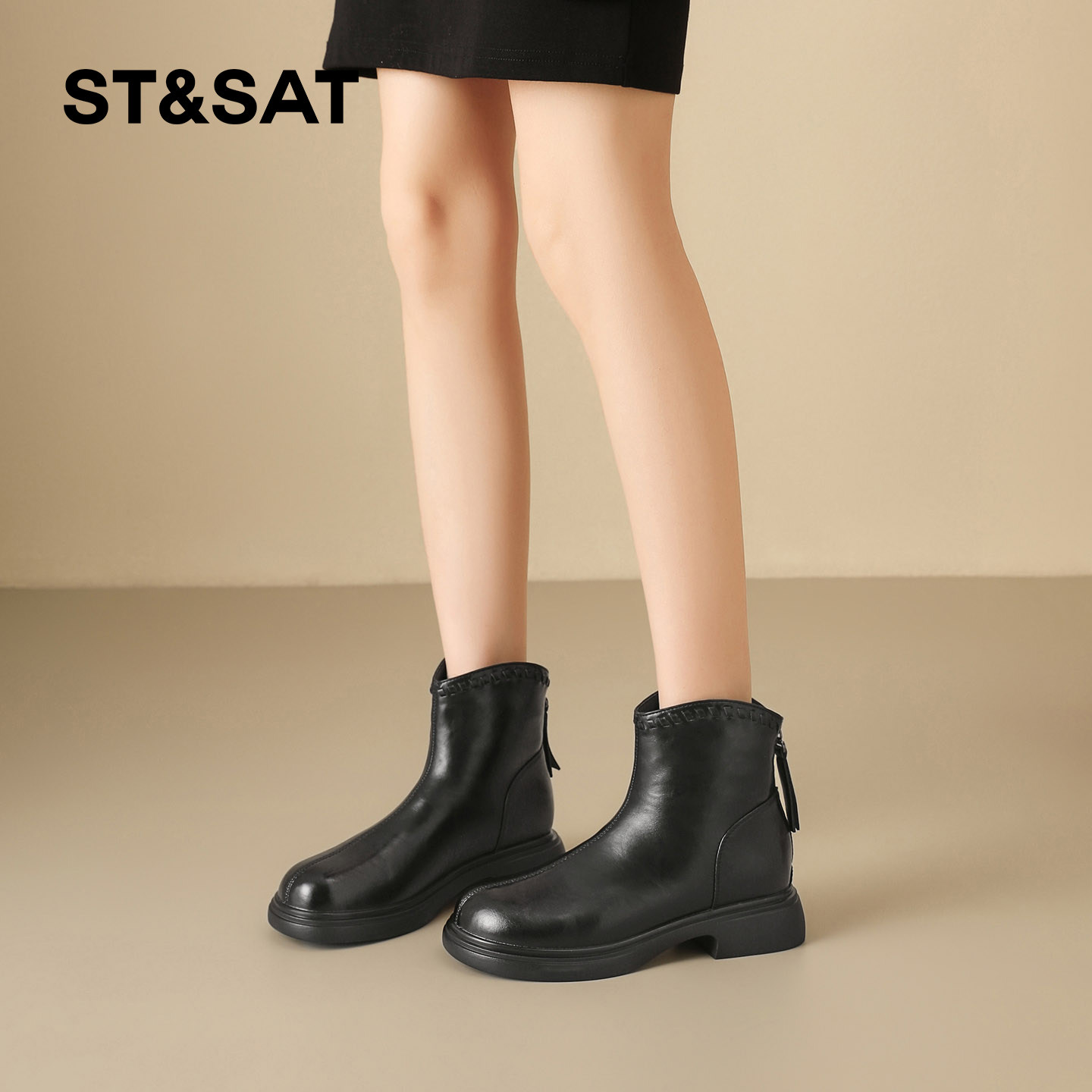 星期六马丁靴女2025冬季新款靴子短靴加绒保暖女士厚底冬天时装靴