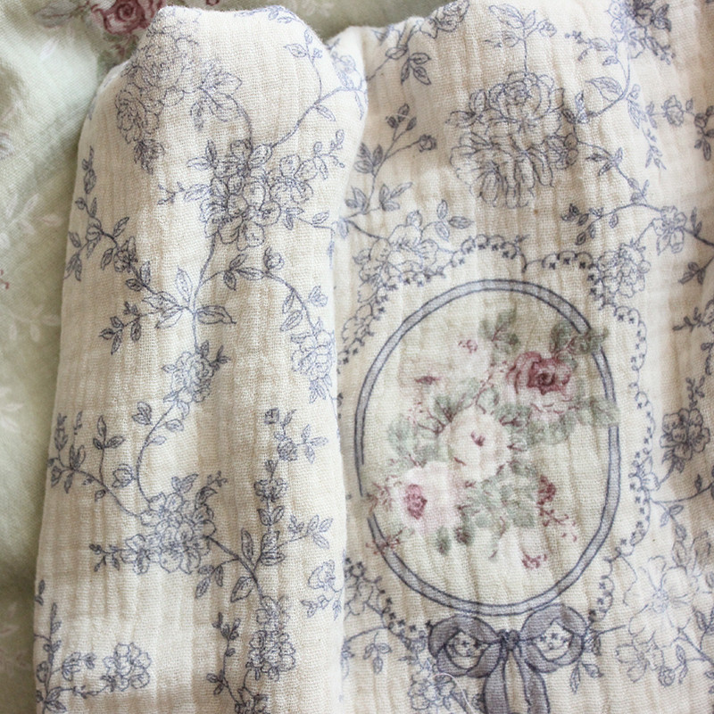 会呼吸的双层纱水洗褶皱纯棉布料睡衣口水巾浴巾被套床单全棉面料