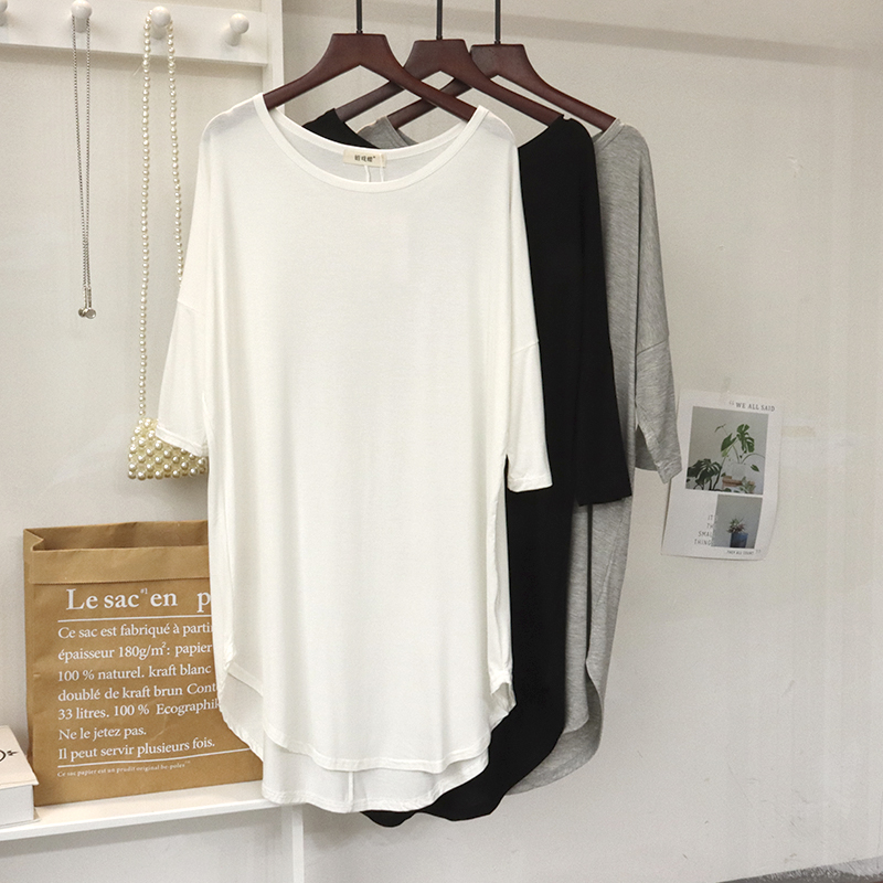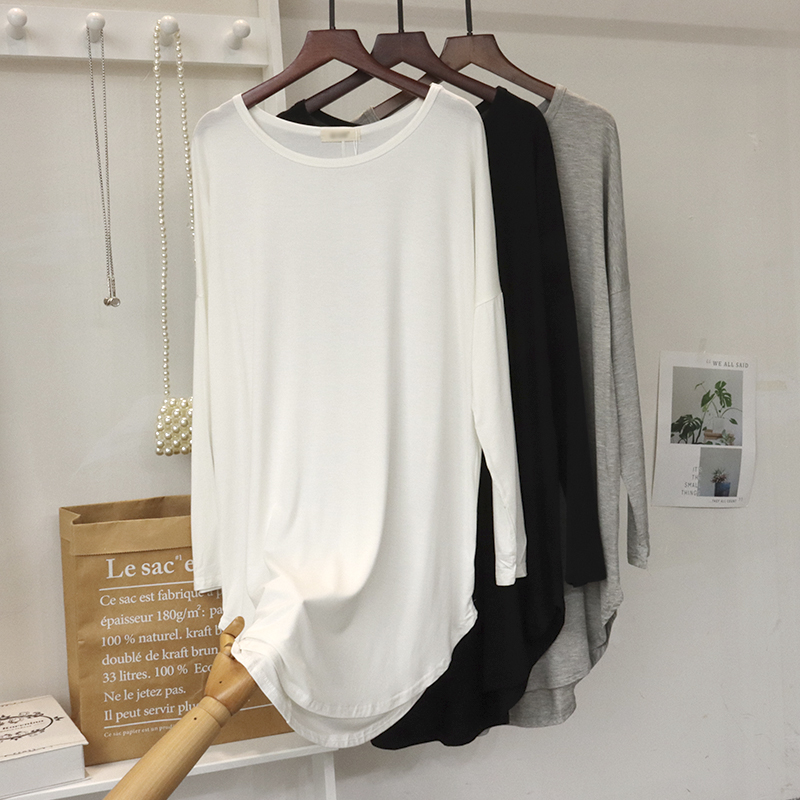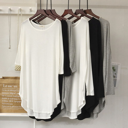 宽松莫代尔大t恤女春秋遮屁股长袖显瘦打底衫中长款半袖长袖上衣