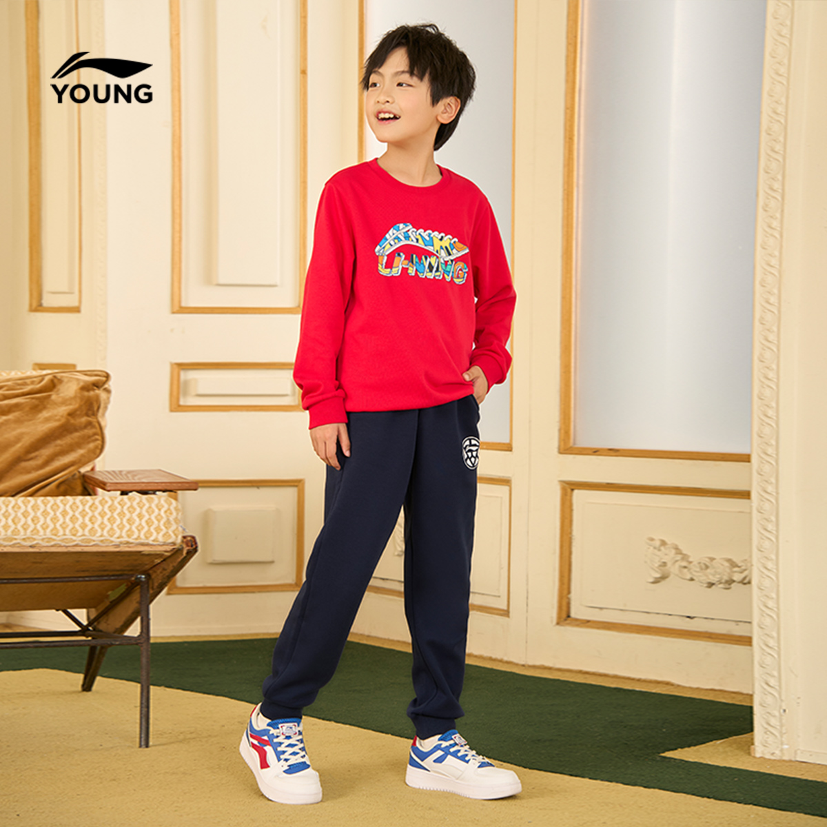 李宁童装卫裤男女小大童2025新款综合体能系列冬季束脚针织童装