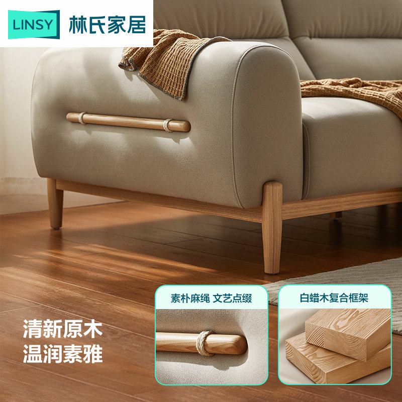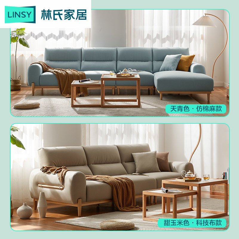 林氏木业北欧实木脚框沙发客厅小户型现代简约布艺沙发组合转角家