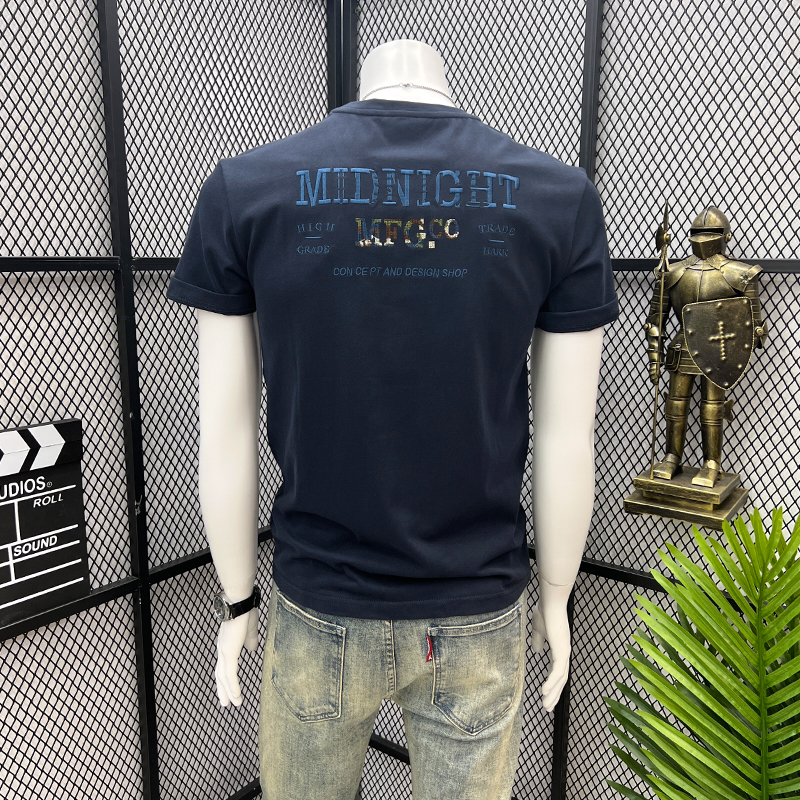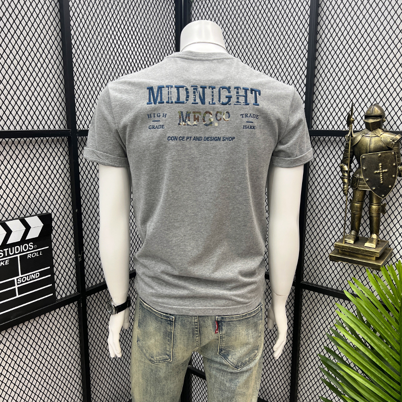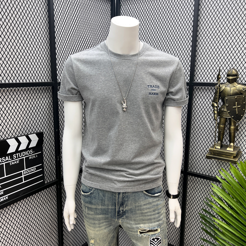 夏季新款字母刺绣休闲圆领半袖短袖体恤韩版潮流百搭上衣T恤男士