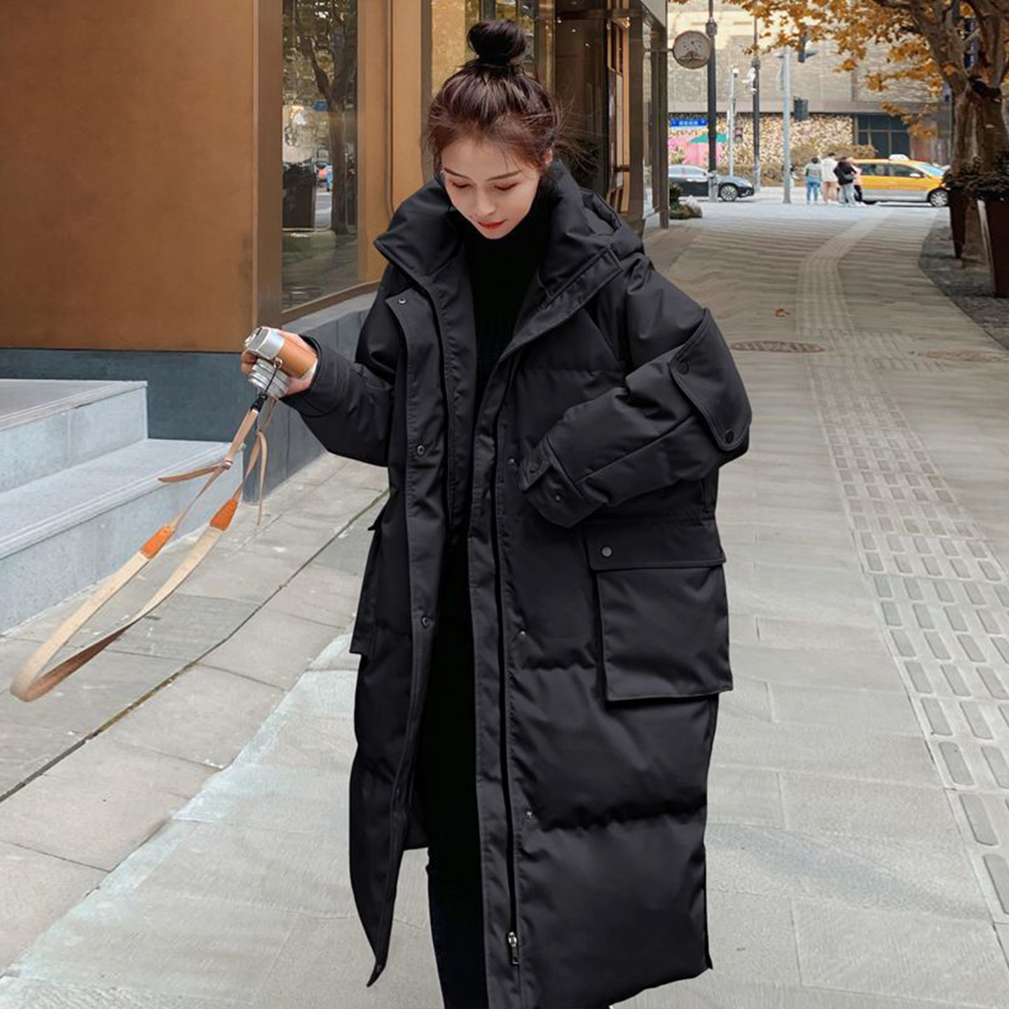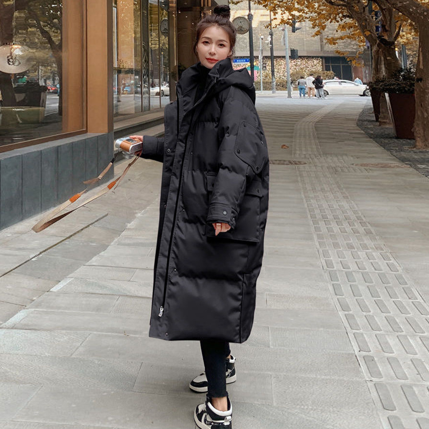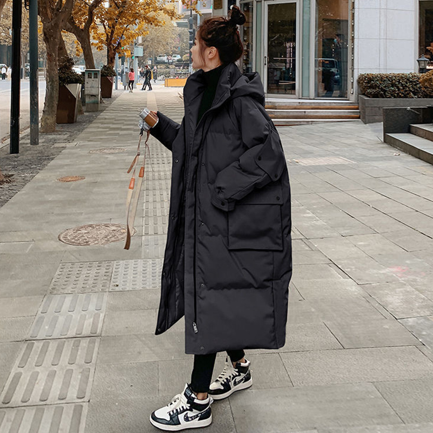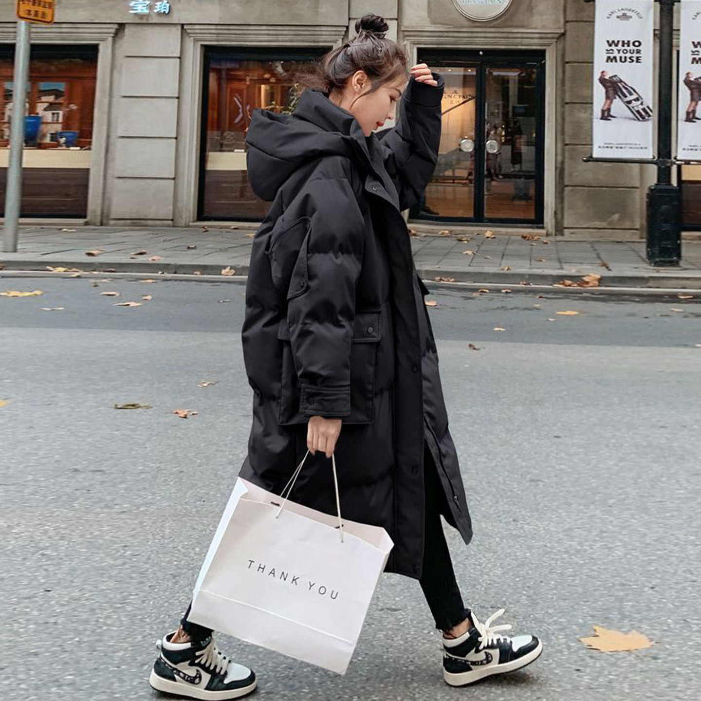 特大码胖mm黑色加厚保暖连帽棉服女冬季宽松高级感过膝派克服外套
