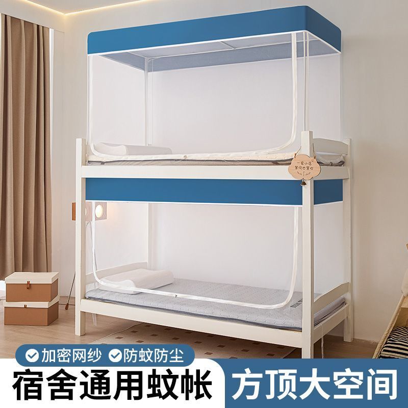 蚊帐学生宿舍上铺下床三开门通用0.9M单人床开学季寝室防尘蚊帐