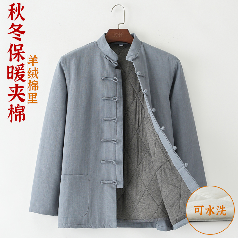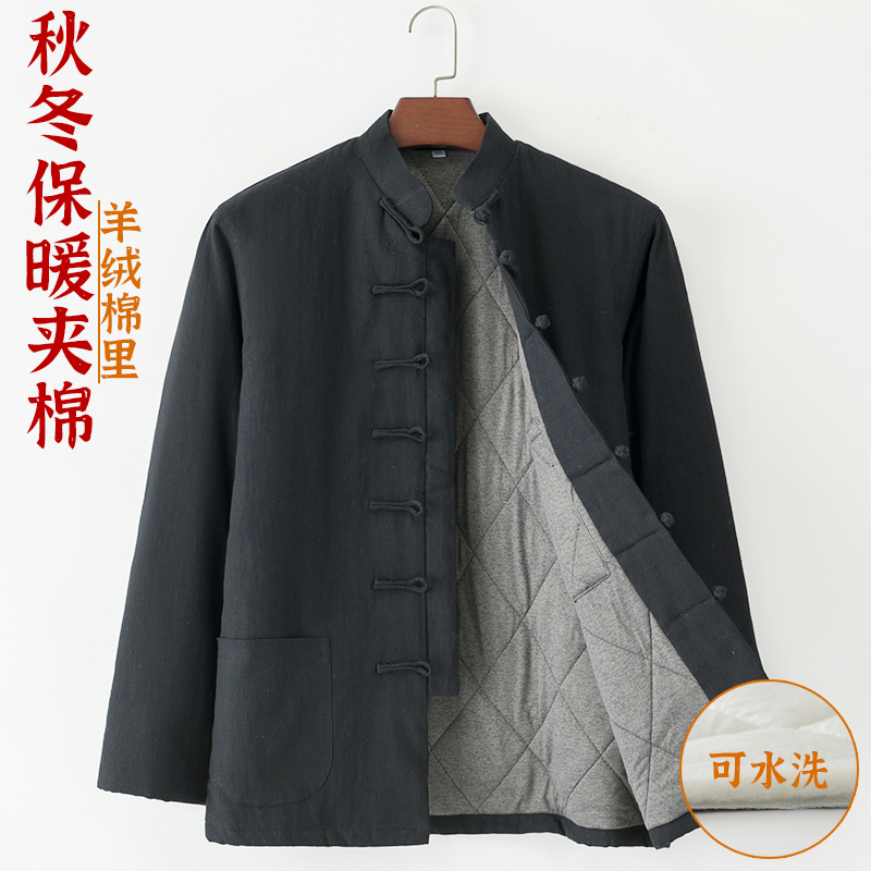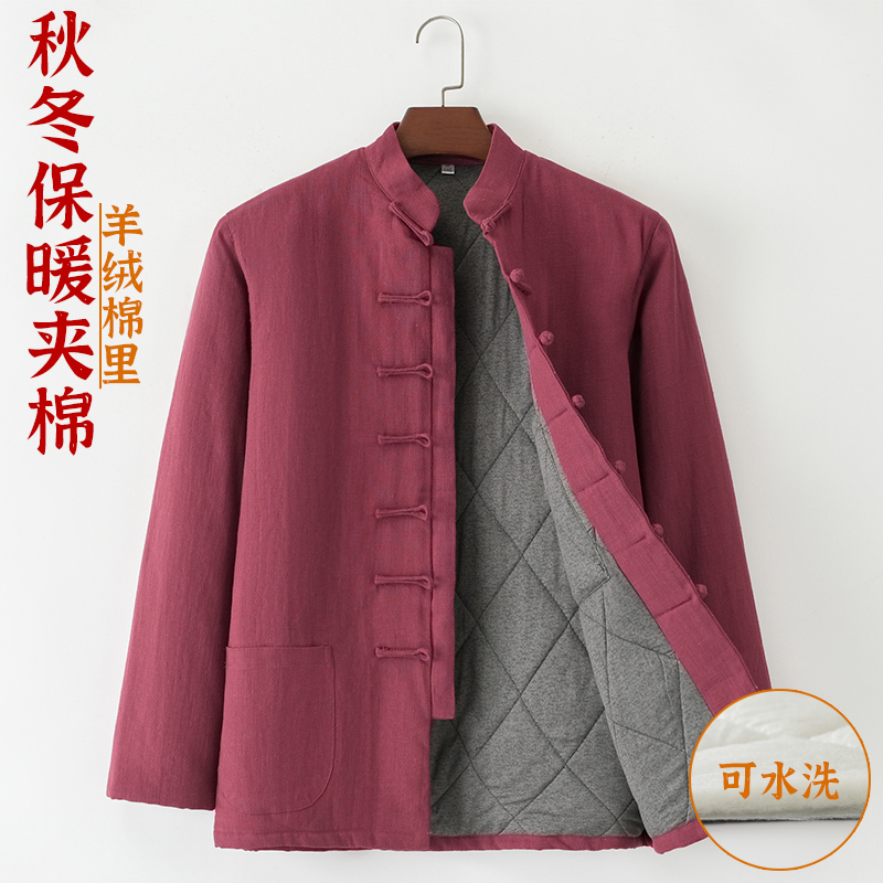 中式棉衣男冬季中老年唐装棉袄加绒保暖夹棉中国风复古盘扣薄棉服