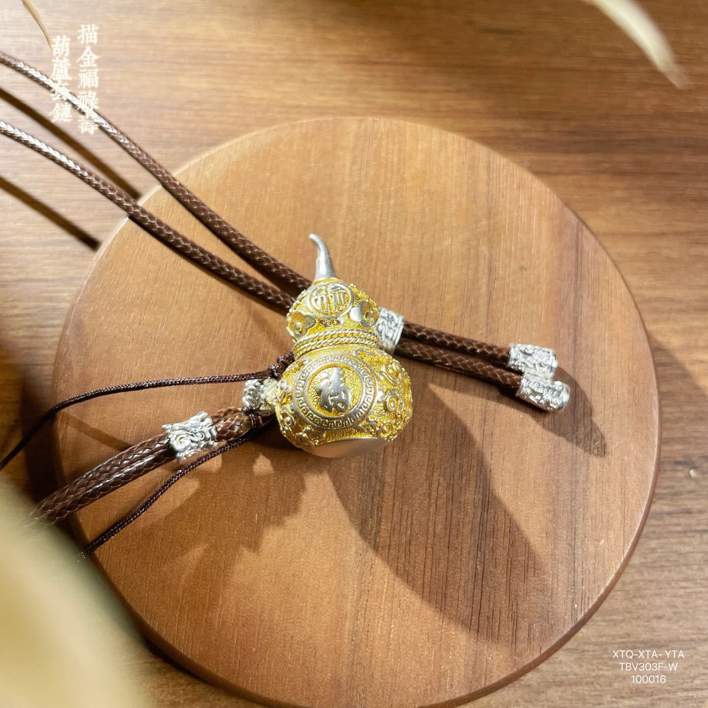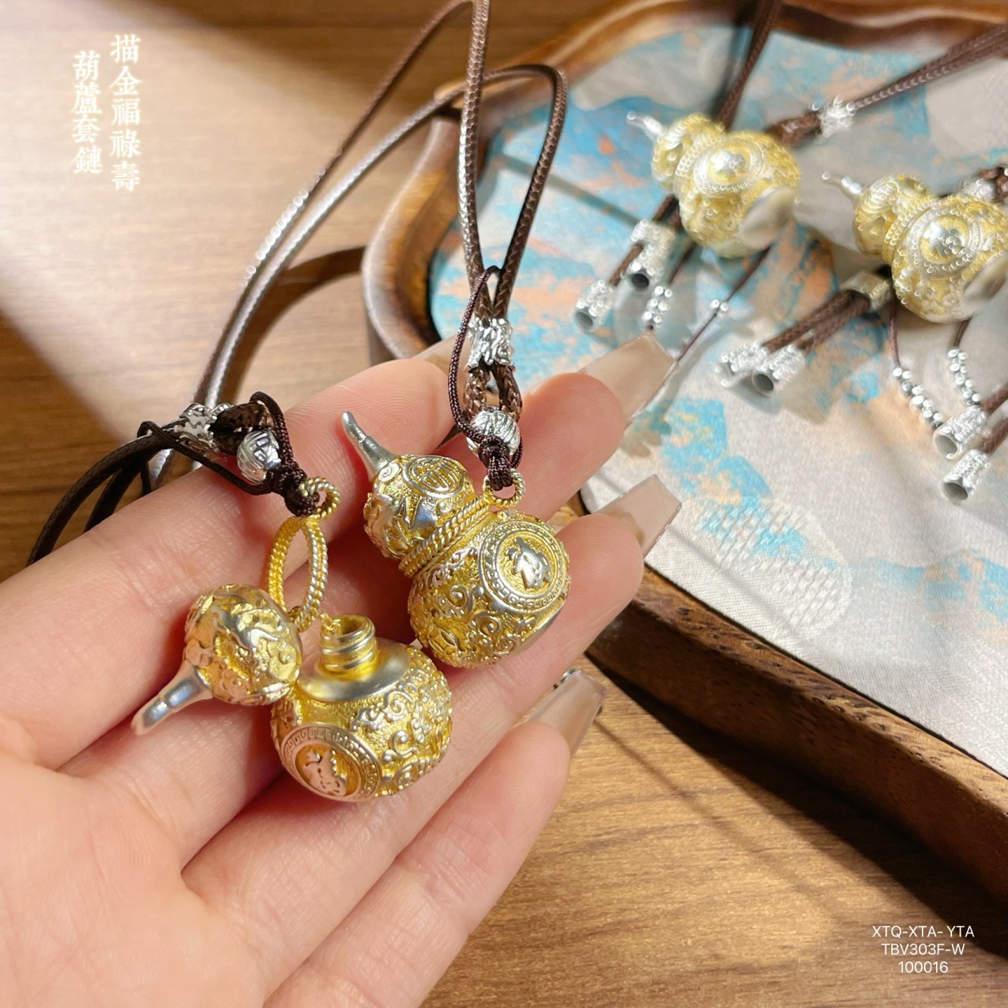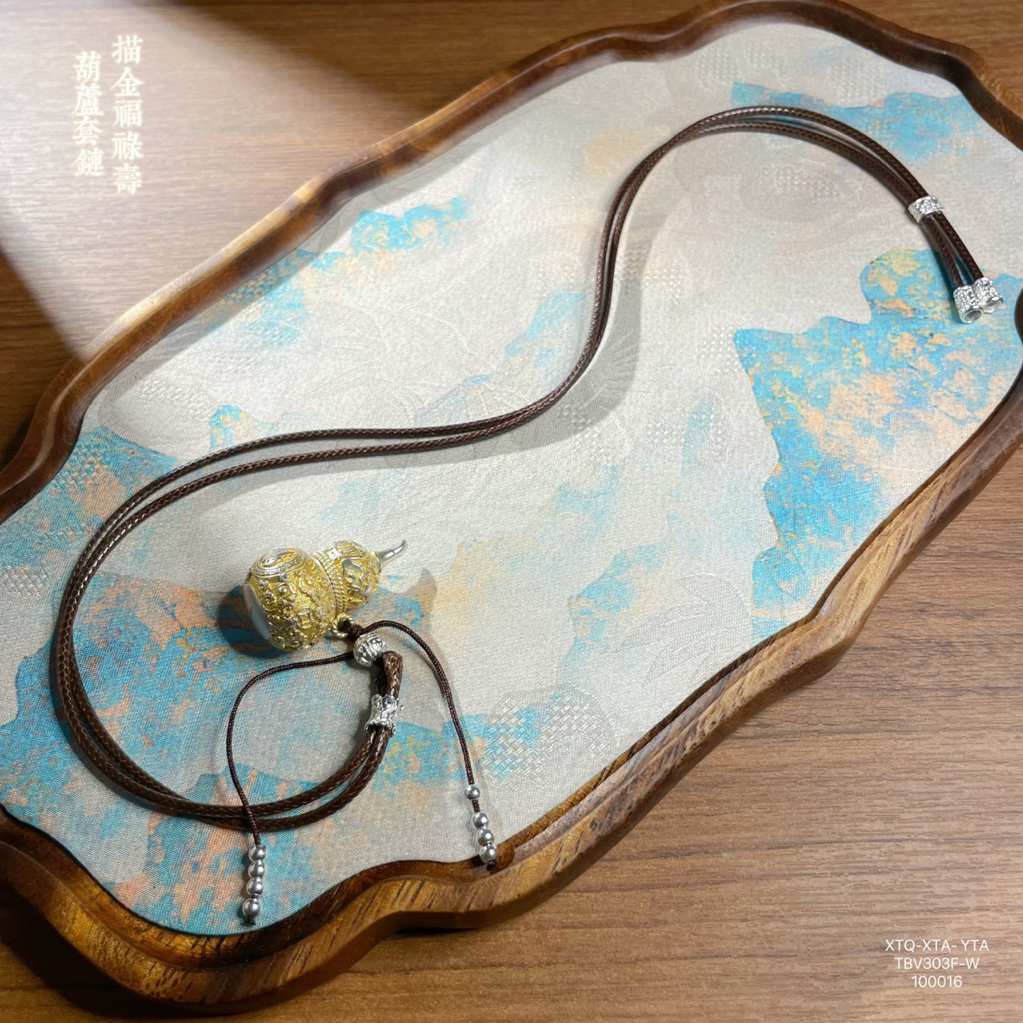 足银999.9古法镂空花丝招财福字葫芦吊坠编绳项链女新中式礼物