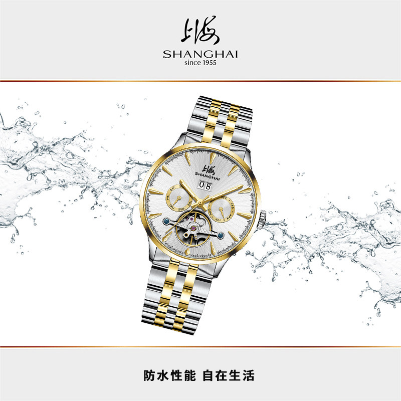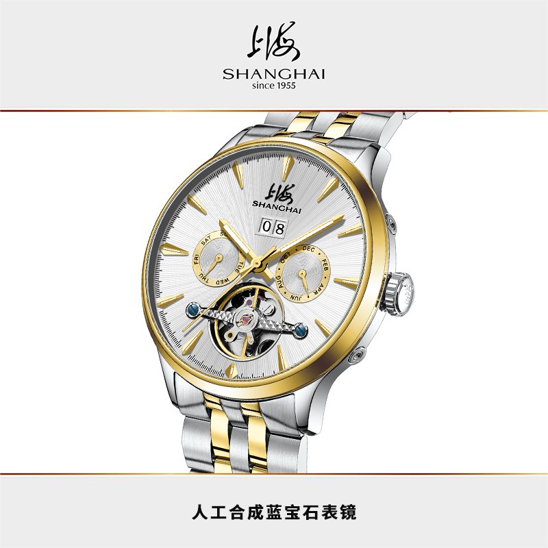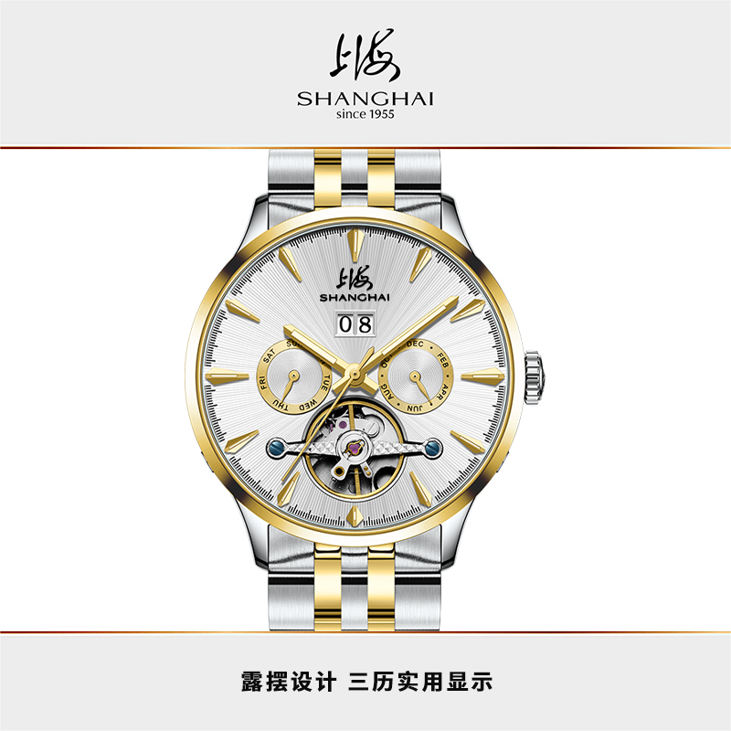 上海手表国民系裸摆41毫米多功能镂空飞轮防水机械男表610