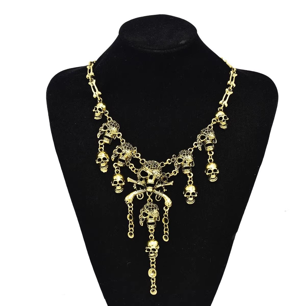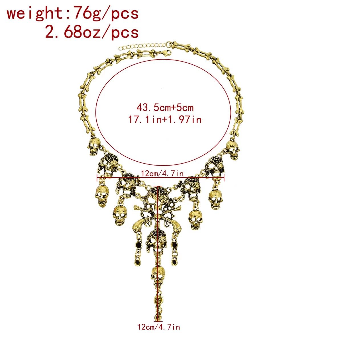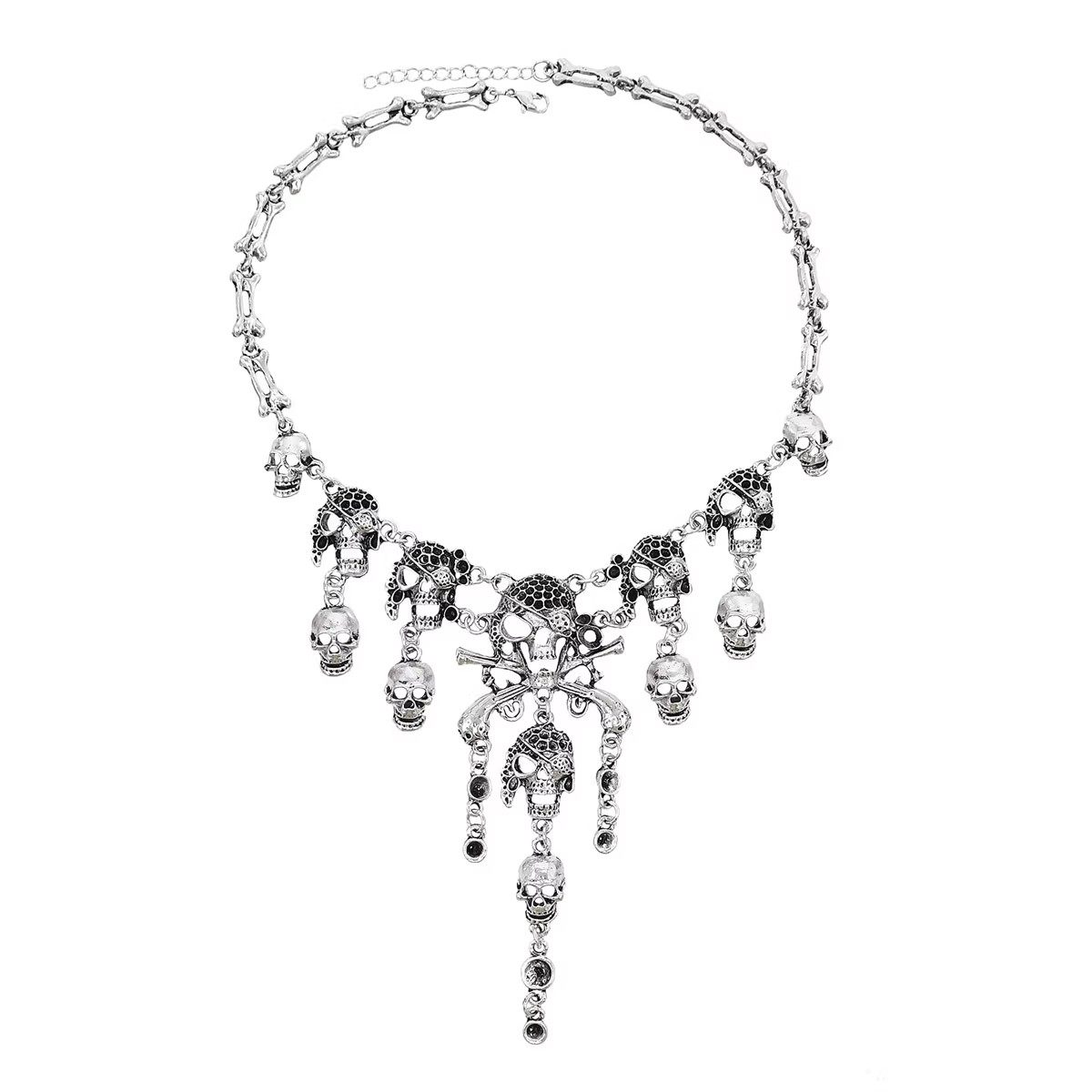 哥特朋克骷髅头项链夸张合金复古海盗骨头锁骨链女士万圣节饰品