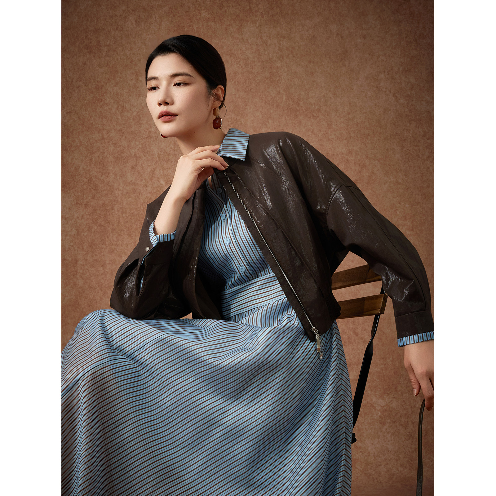 【松弛有度】粉蓝衣橱2026春装新款复古休闲撞色廓形夹克短外套女