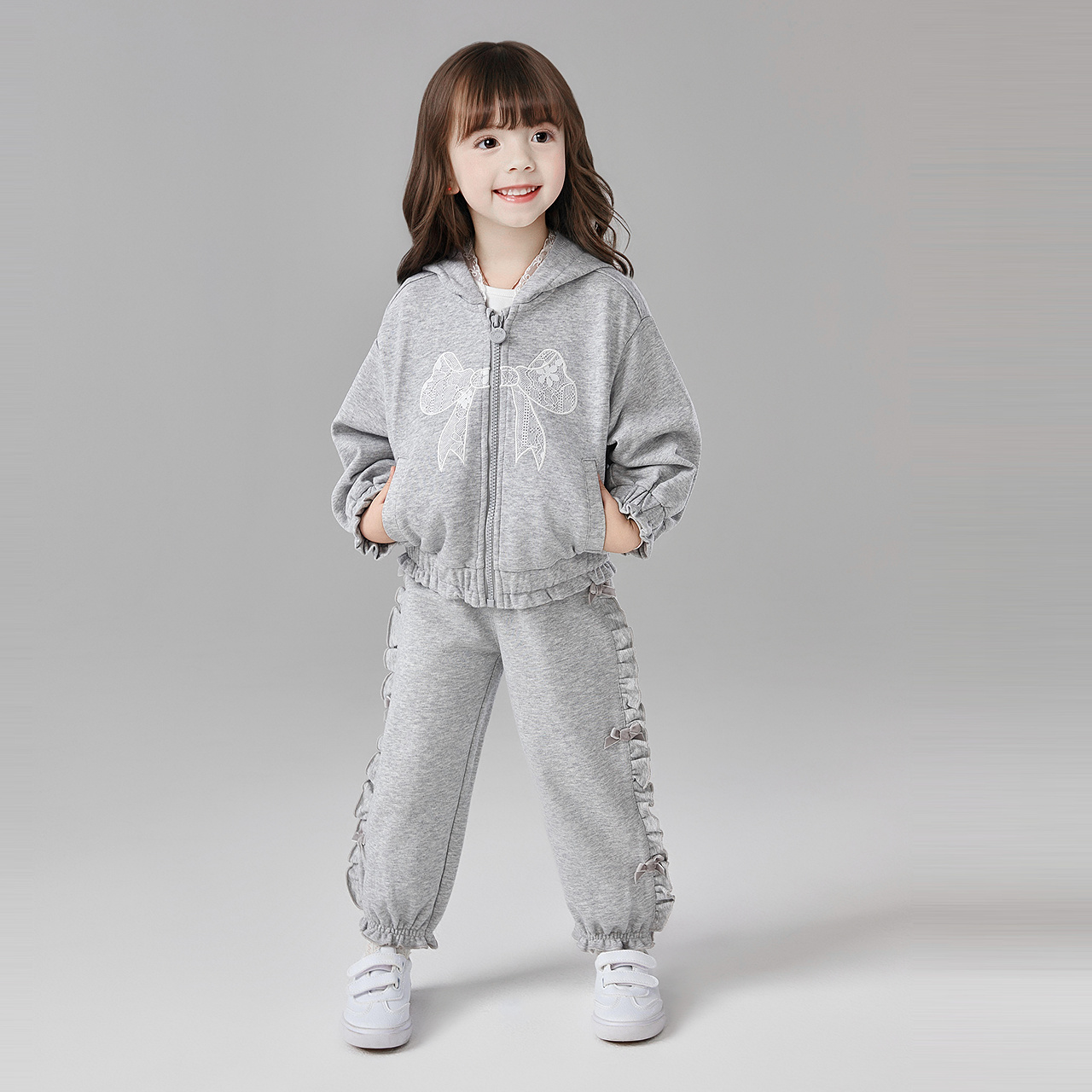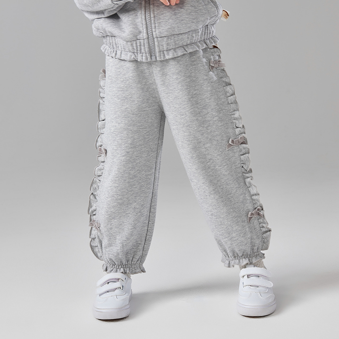 笛莎童装女童裤子秋季新款小童女孩宝宝儿童休闲裤灰色运动裤束脚