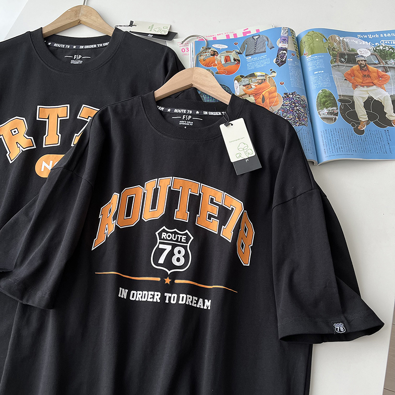 美式休闲 外贸男装纯棉柔软字母印花夏季宽松短袖T恤