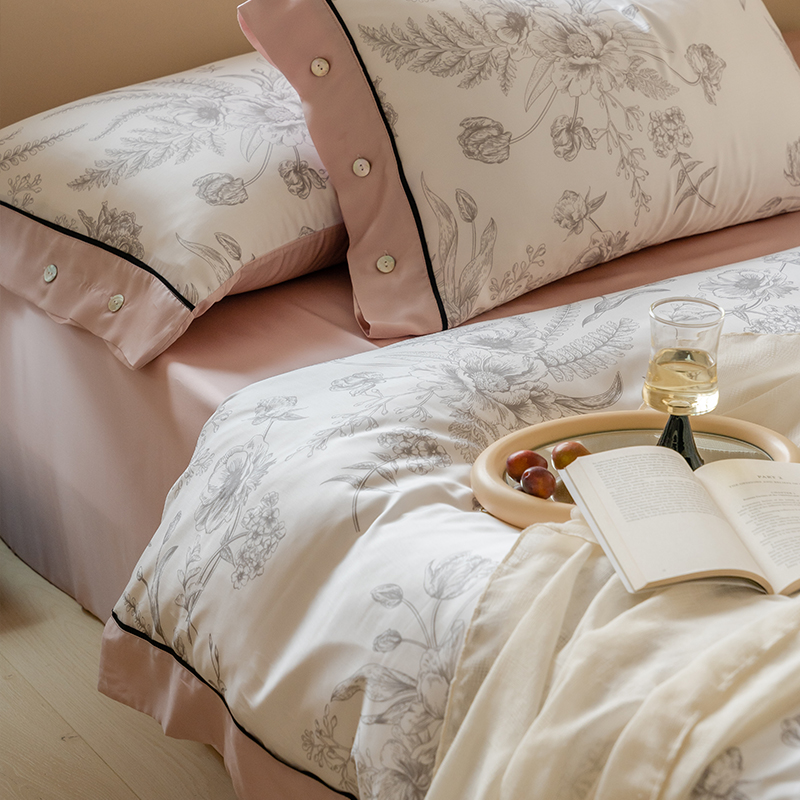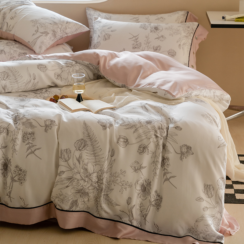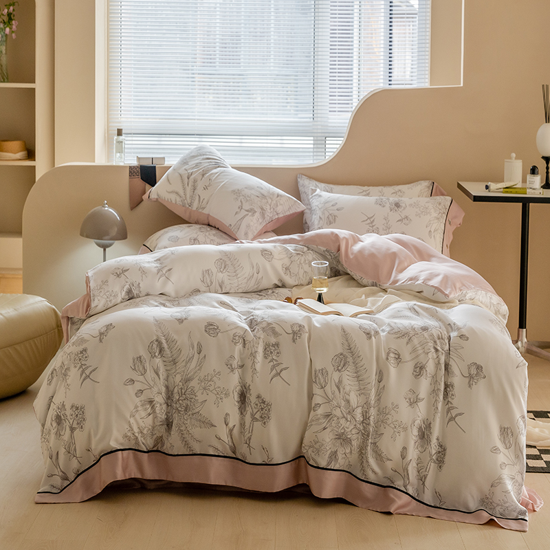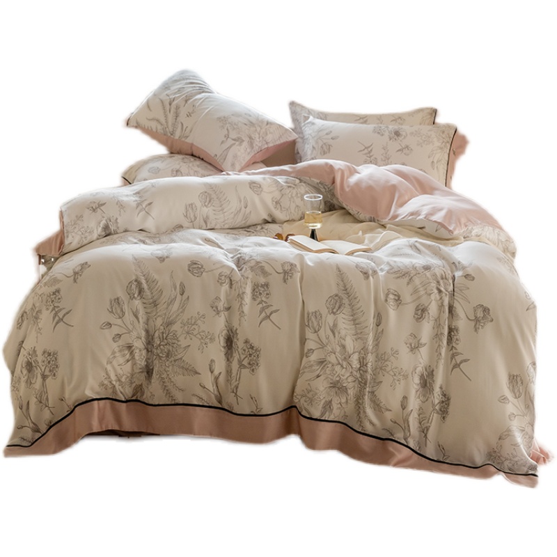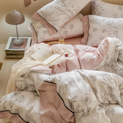 慵懒裸睡法式公主风双面80支天丝四件套夏季凉感冰丝被套床上用品