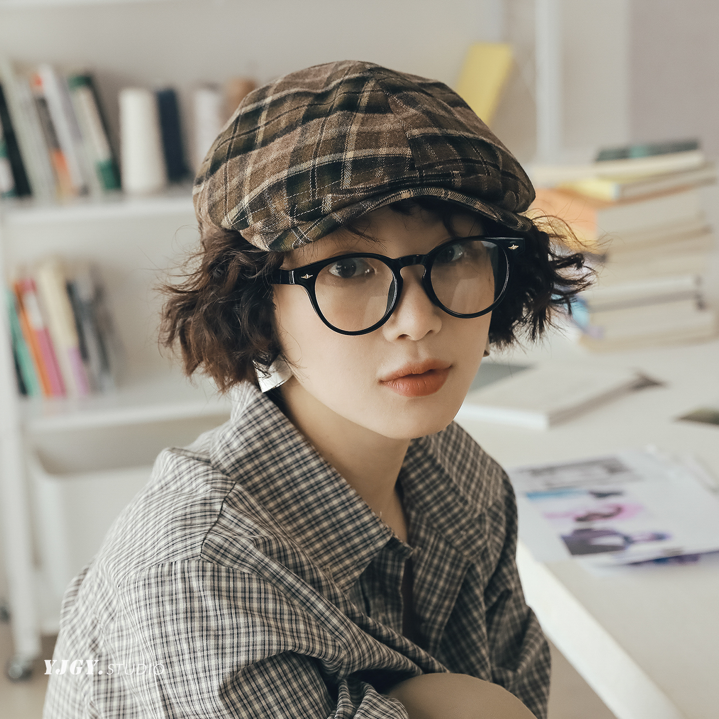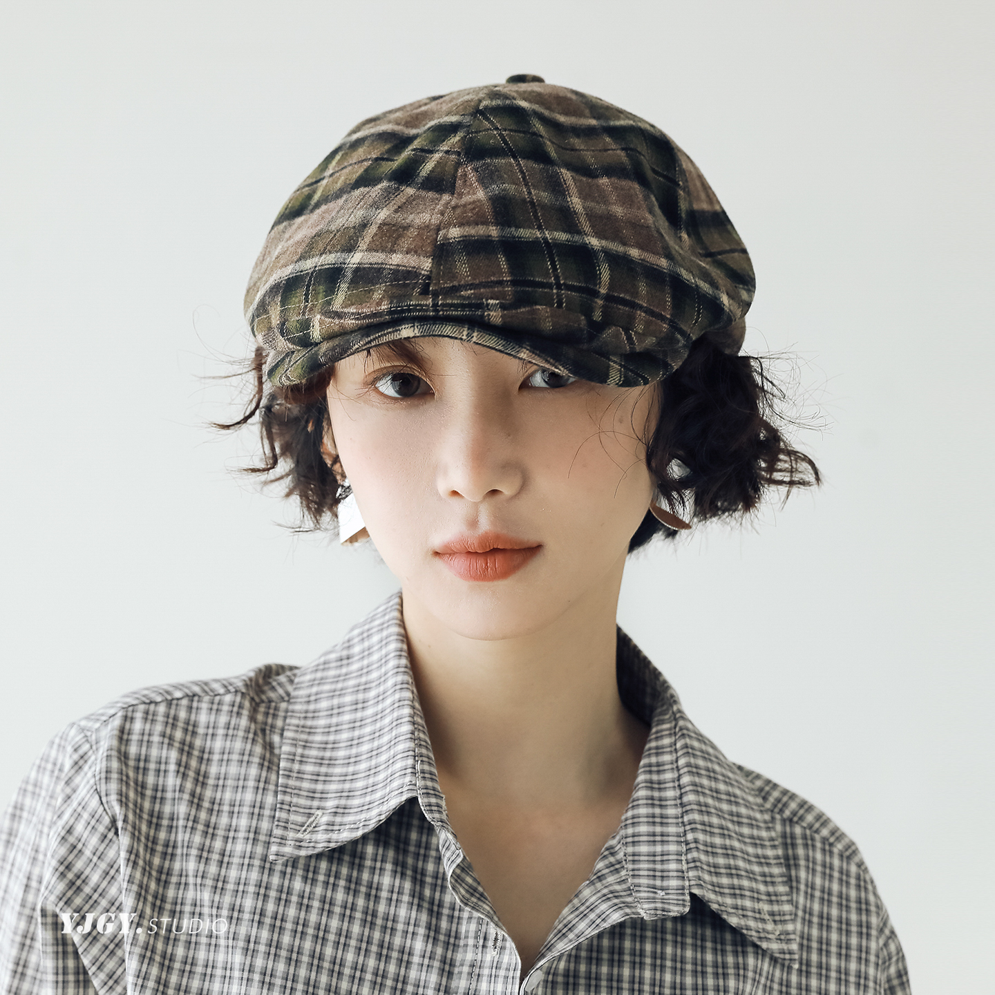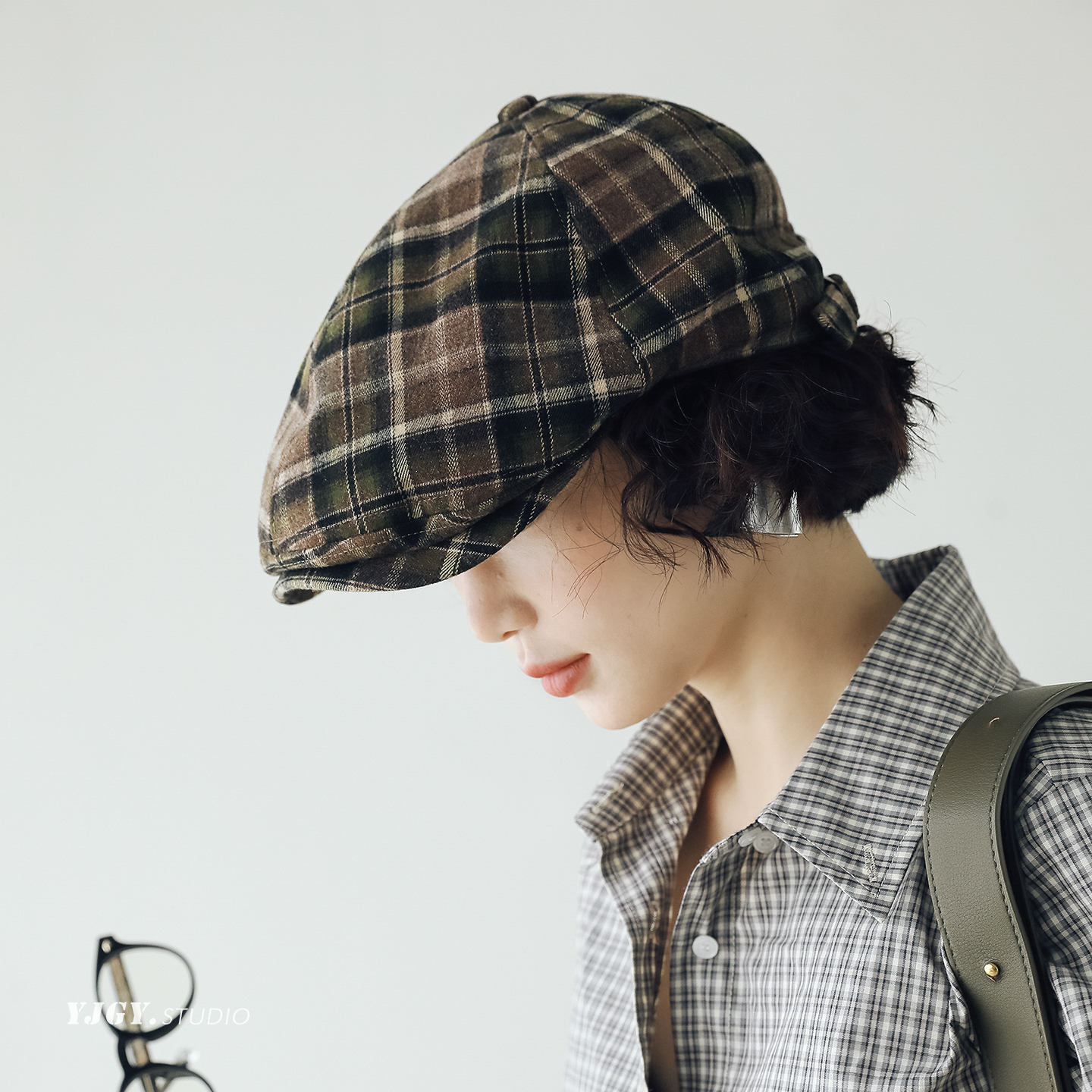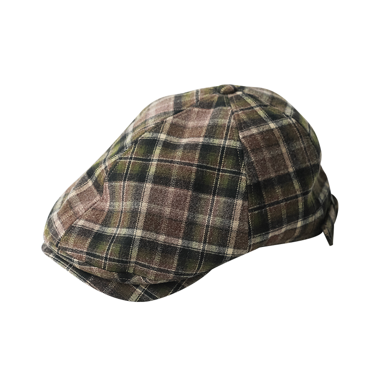 印计谷羽 原创设计磨毛格纹鸭舌帽女秋冬季百搭韩版文艺报童帽子