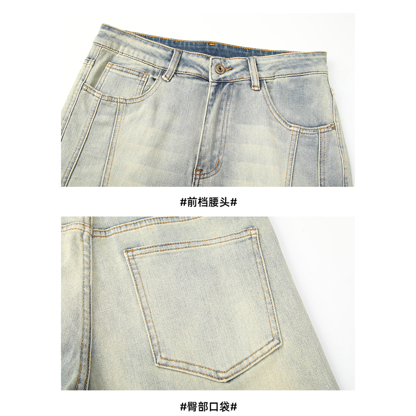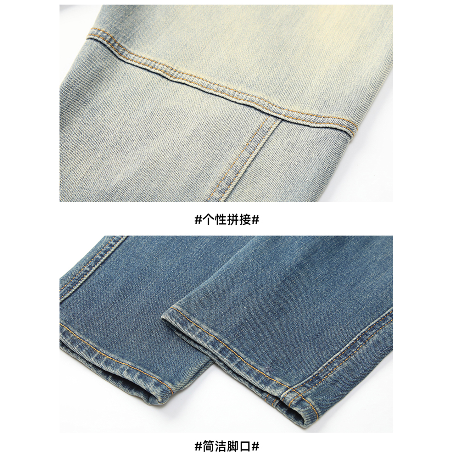 DESIGNSECRETS 25FW渐变撞色牛仔裤男修身直筒小脚潮流机车休闲裤