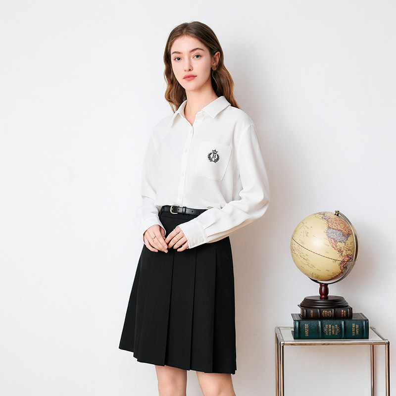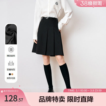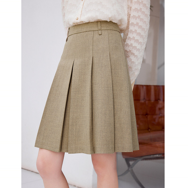 betu百图学院风百褶裙新款知性高级感显瘦及膝压褶半身裙