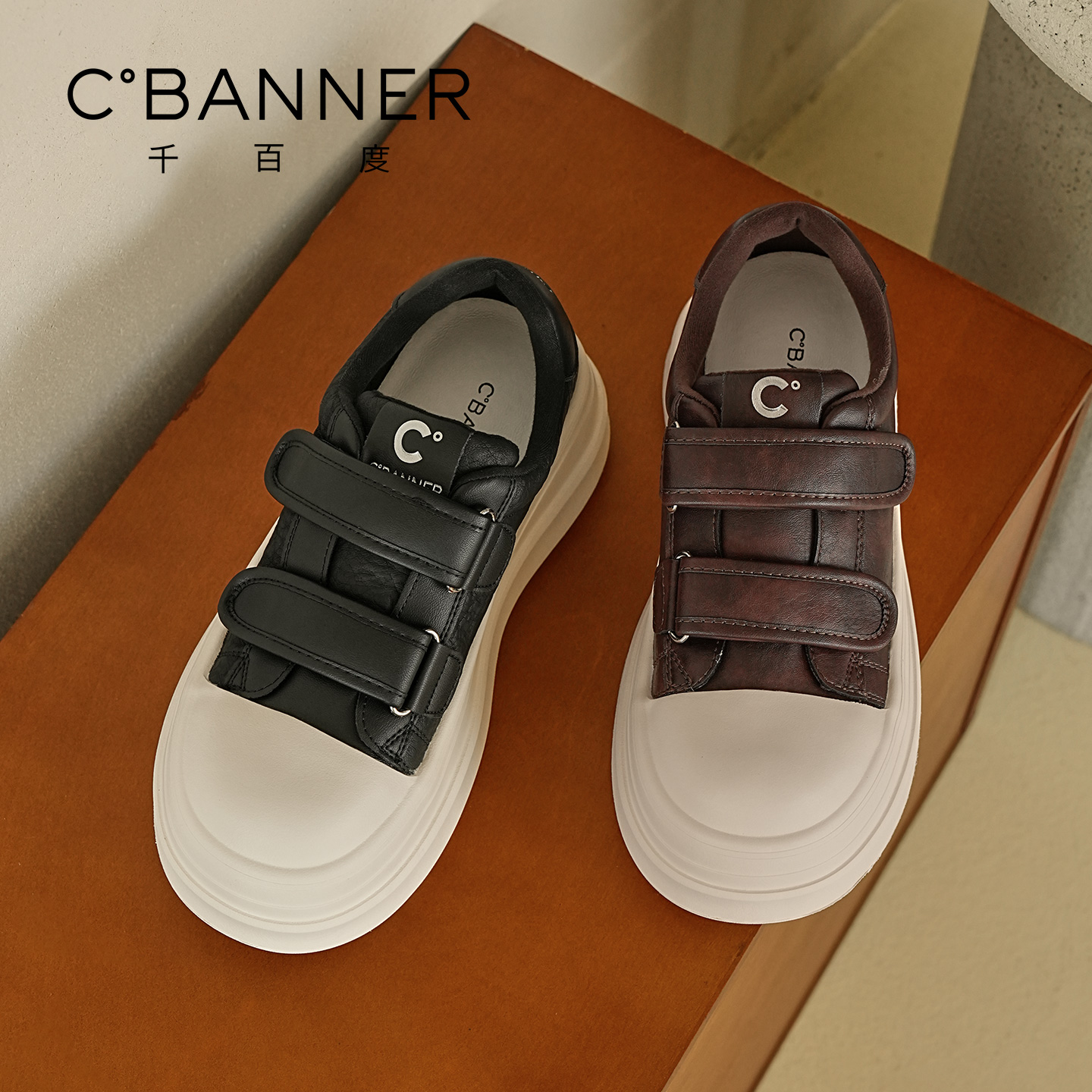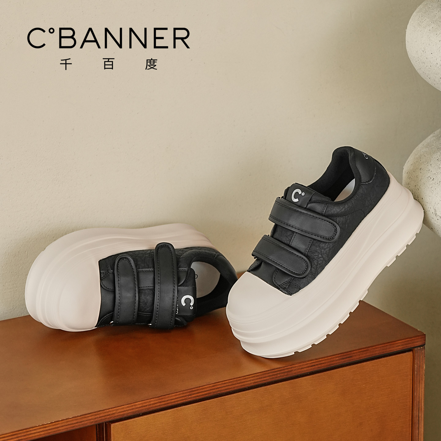 千百度免系带厚底小白鞋女2025秋季新款百搭板鞋增高运动休闲鞋女