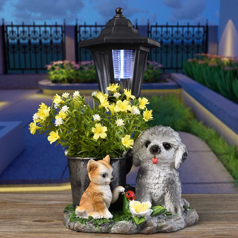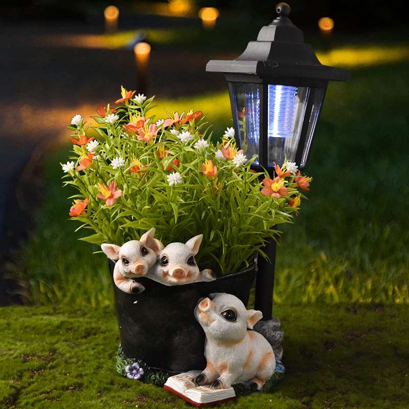 跨境新品动物花盆六角灯花园装饰园林户外景观路灯树脂工艺品摆件