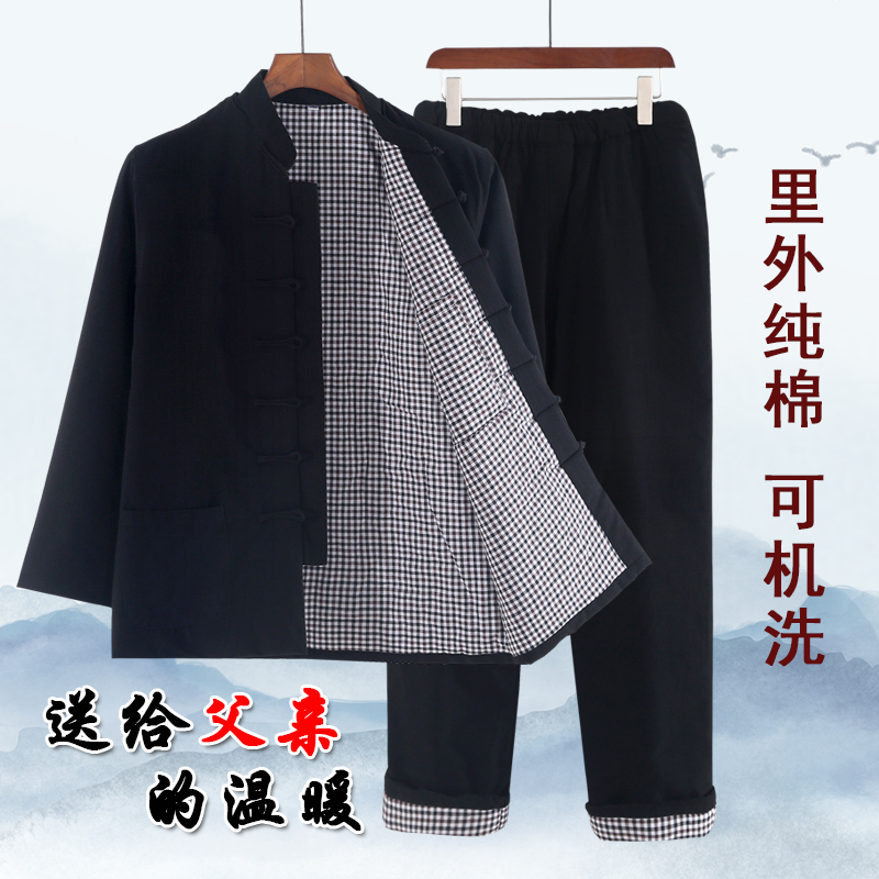 唐装棉袄男棉衣棉裤套装秋冬季粗布中式中国风中老年人爸爸厚棉服