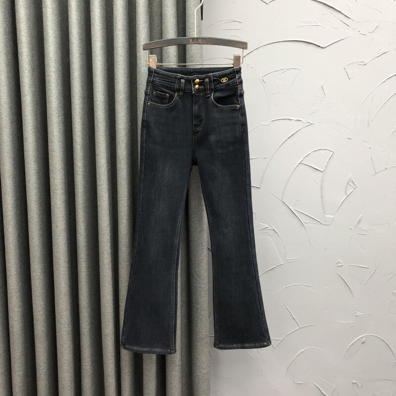 清仓加绒休闲微喇牛仔裤女2024秋冬时尚洋气百搭直筒阔脚喇叭裤潮