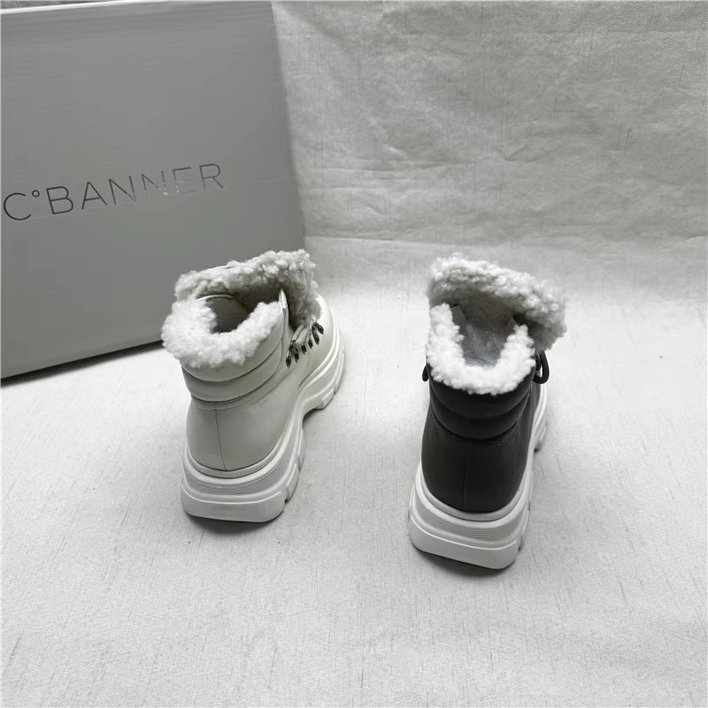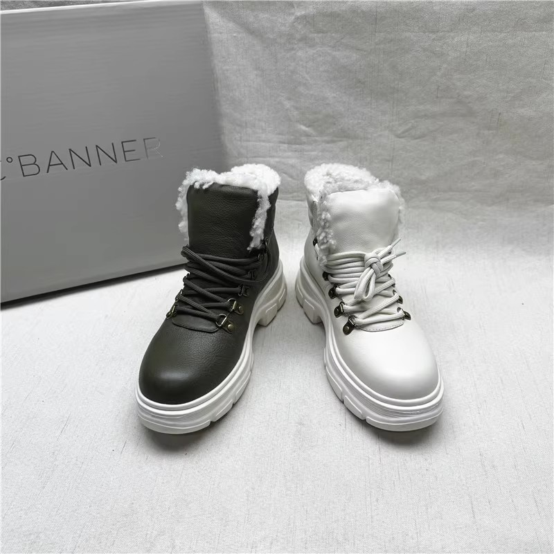 商场品牌撤柜正品时尚厚底马丁靴女冬季新款真皮加绒保暖系带短靴
