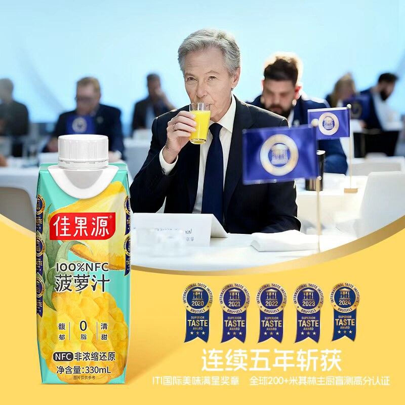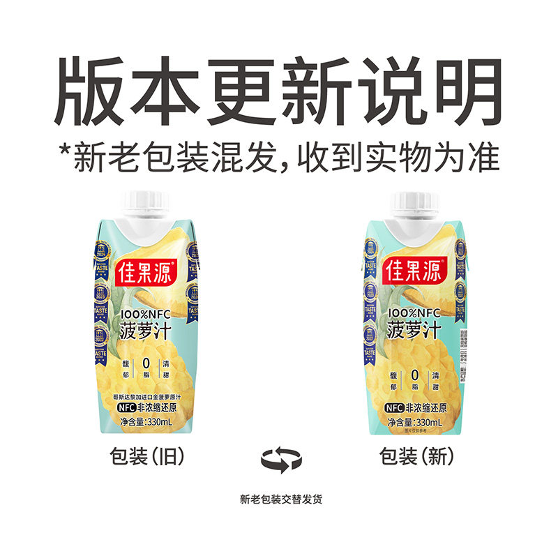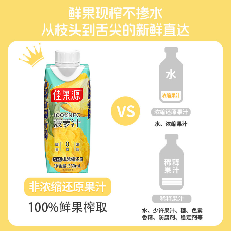【王俊凯推荐】佳果源果汁100%NFC菠萝汁330ml*12瓶高维C饮料礼盒