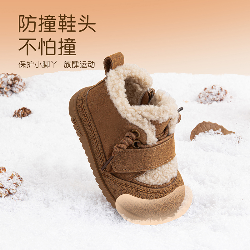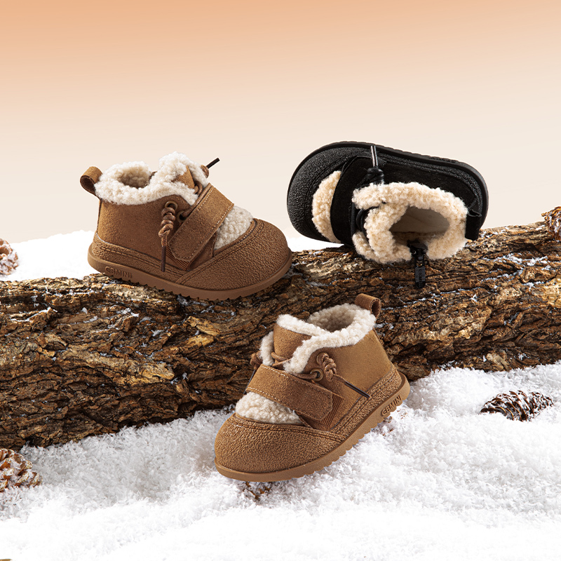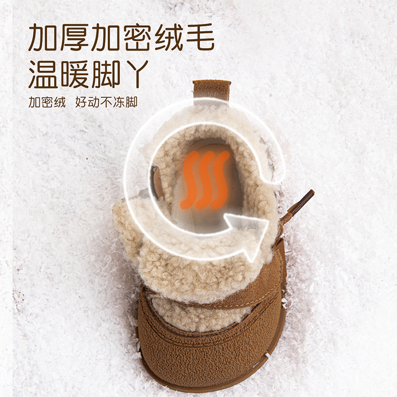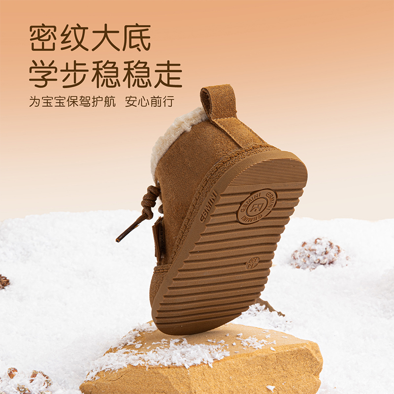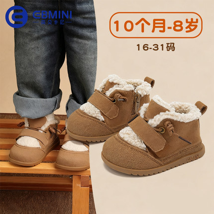 英贝米尼儿童雪地靴冬季男宝宝棉鞋加绒保暖男童鞋子女童毛毛鞋