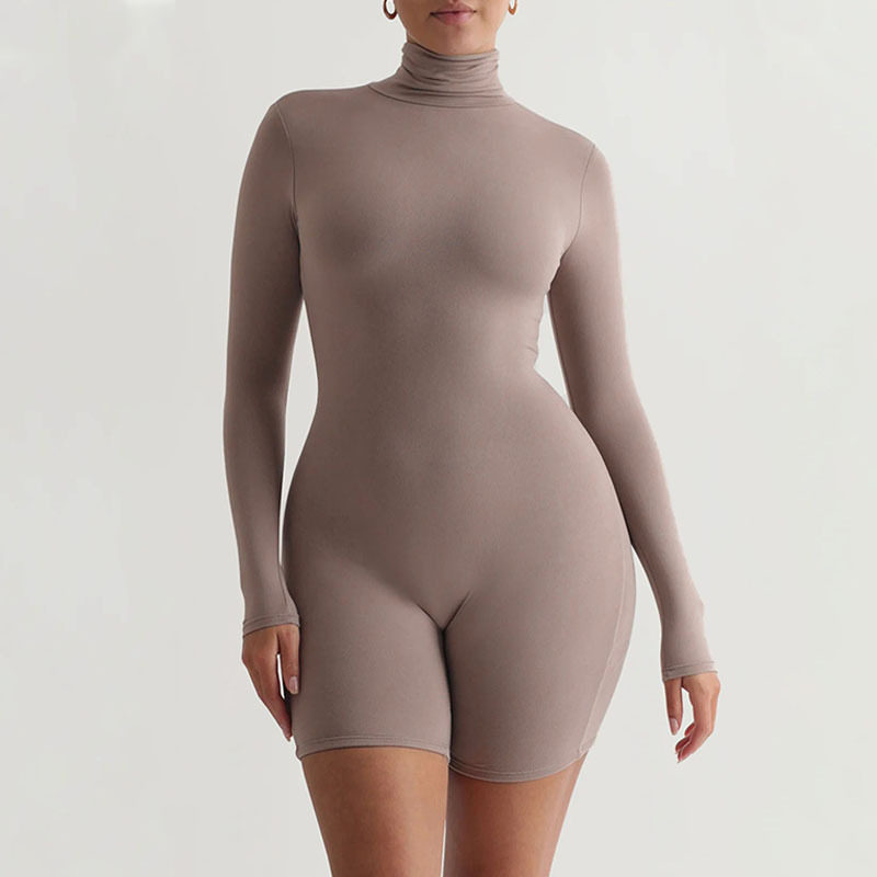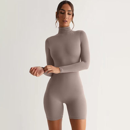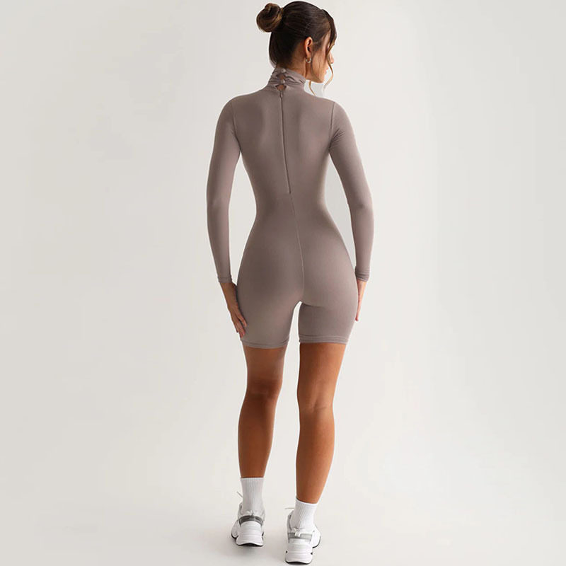 欧美风2024春季新品时尚修身后背拉链高领休闲运动长袖连体裤女
