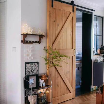 北欧复古实木谷仓门书房厨房吊轨推拉门木门隔断卫生间移门定制