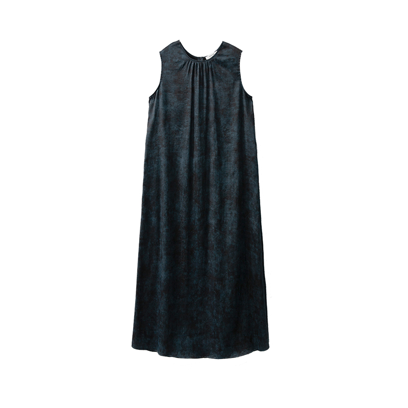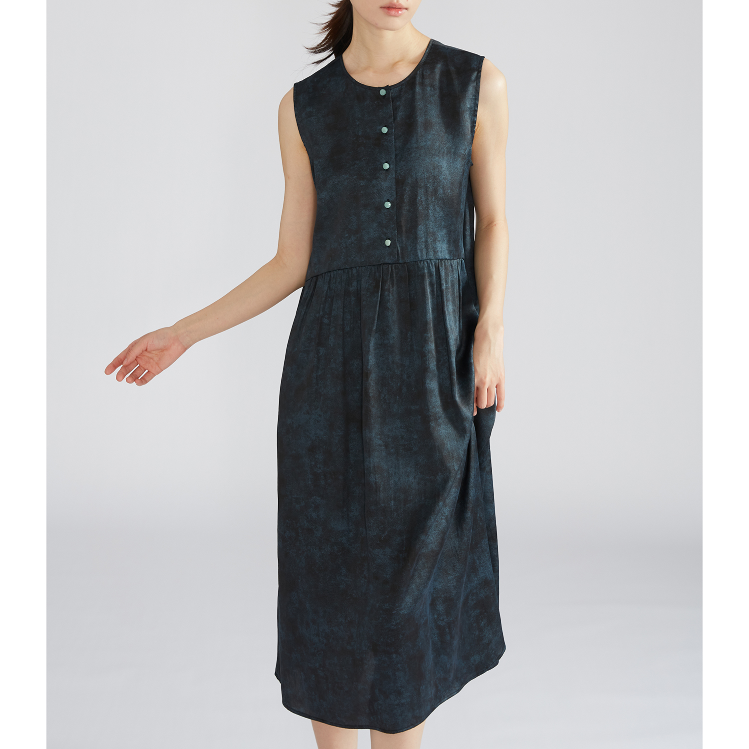 一丝牵 前后两穿 兰色鎏银真丝香云纱背心裙100%桑蚕丝连衣裙宽松