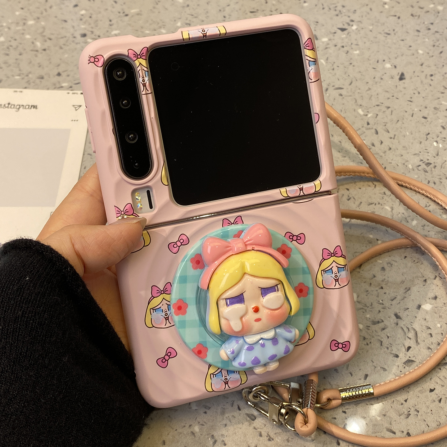 趣味粉色磁吸斜跨挂绳适用华为purax折叠屏手机壳p50女Pocket2小米mixflip2支架pura/x典藏版s三星zflip7/6/5