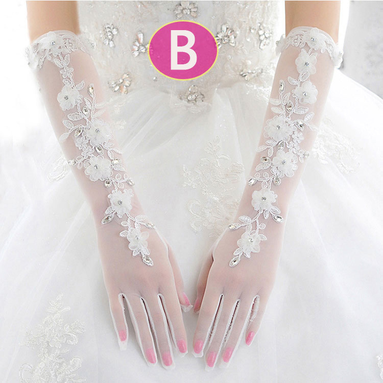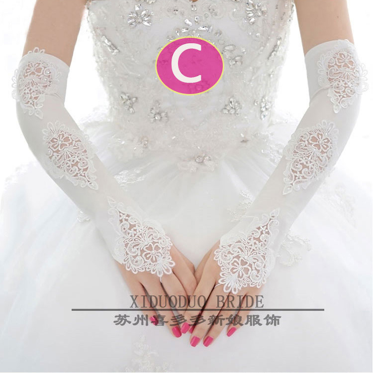 新娘手套婚纱手纱长款白色结婚礼服手袖蕾丝韩式秋冬季缎面红色仙