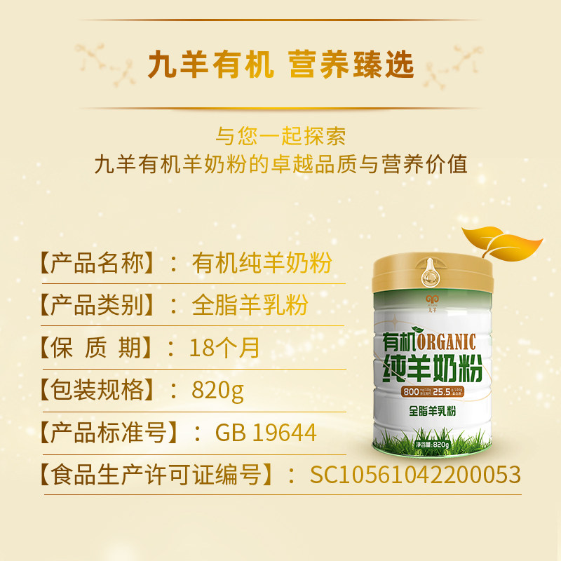 九羊有机纯羊奶粉820g罐装女士儿童成人羊奶粉营养礼品礼盒装