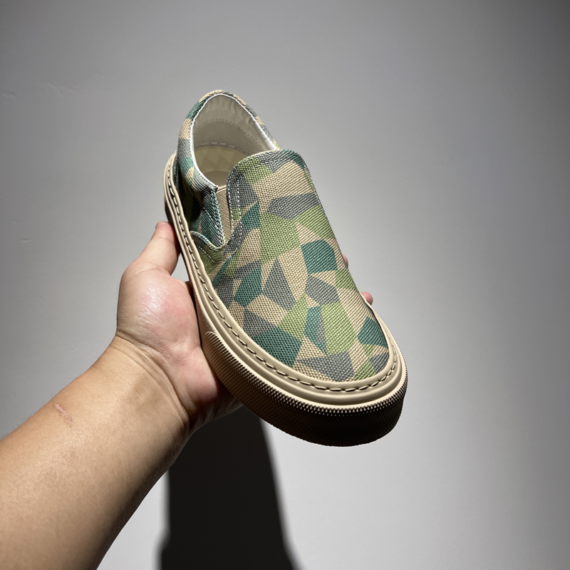低帮迷彩帆布板鞋2025夏季新款懒人一脚蹬复古潮流休闲百搭男鞋子