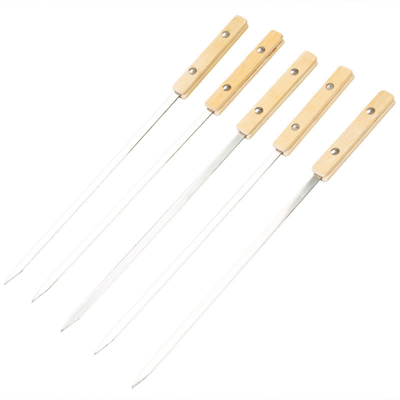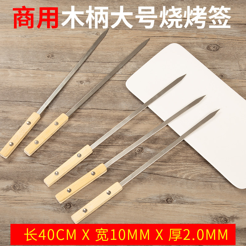 加宽加厚白竹把烧烤签子不锈钢扁签新疆大串全羊铁钎字用具烤串针