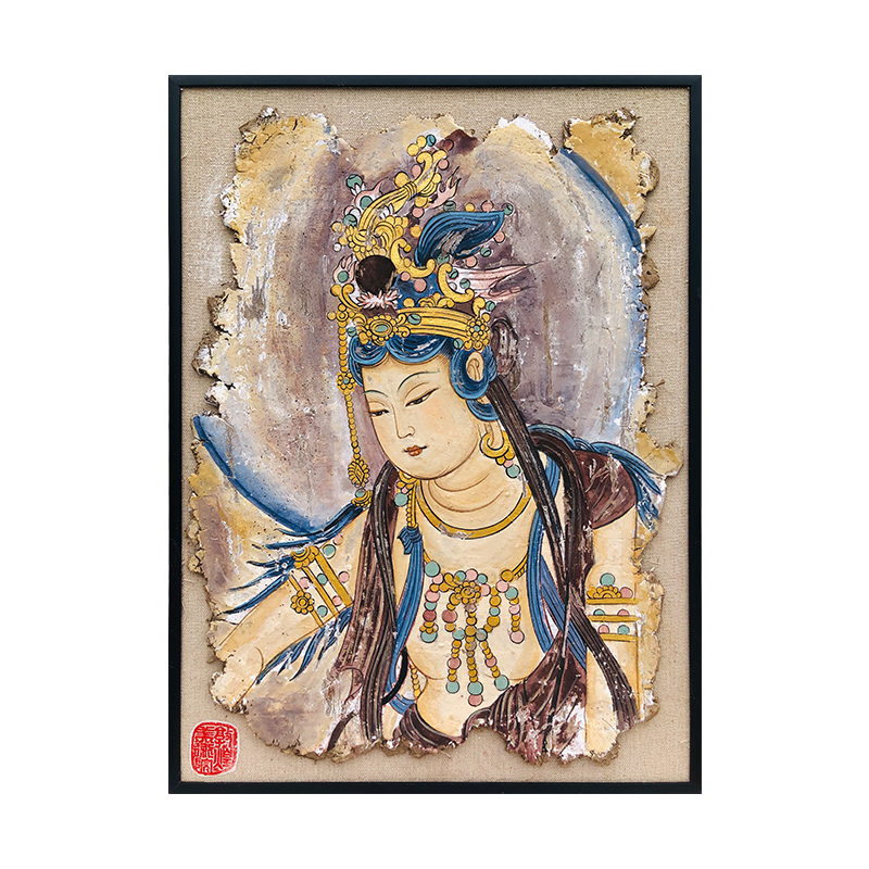 敦煌研究院 敦煌壁画纯手工泥坯画版画 博物馆文创客厅装饰画挂画