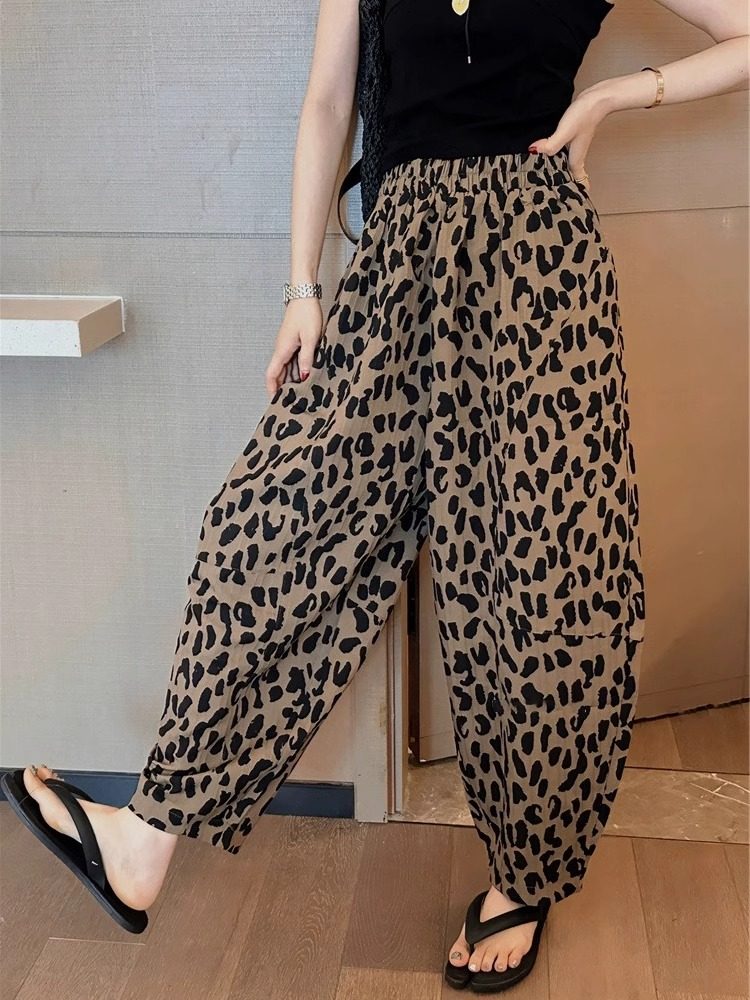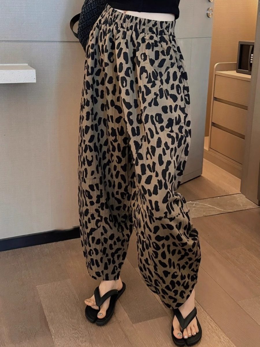 豹纹哈伦裤女欧洲站2025夏季新款复古宽松休闲雪纺九分萝卜裤子