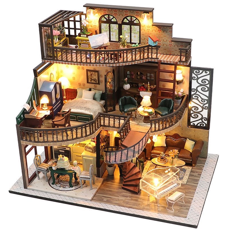 筑梦高阁diy小屋手工制作木质拼装模型中国积木别墅房子过家家女