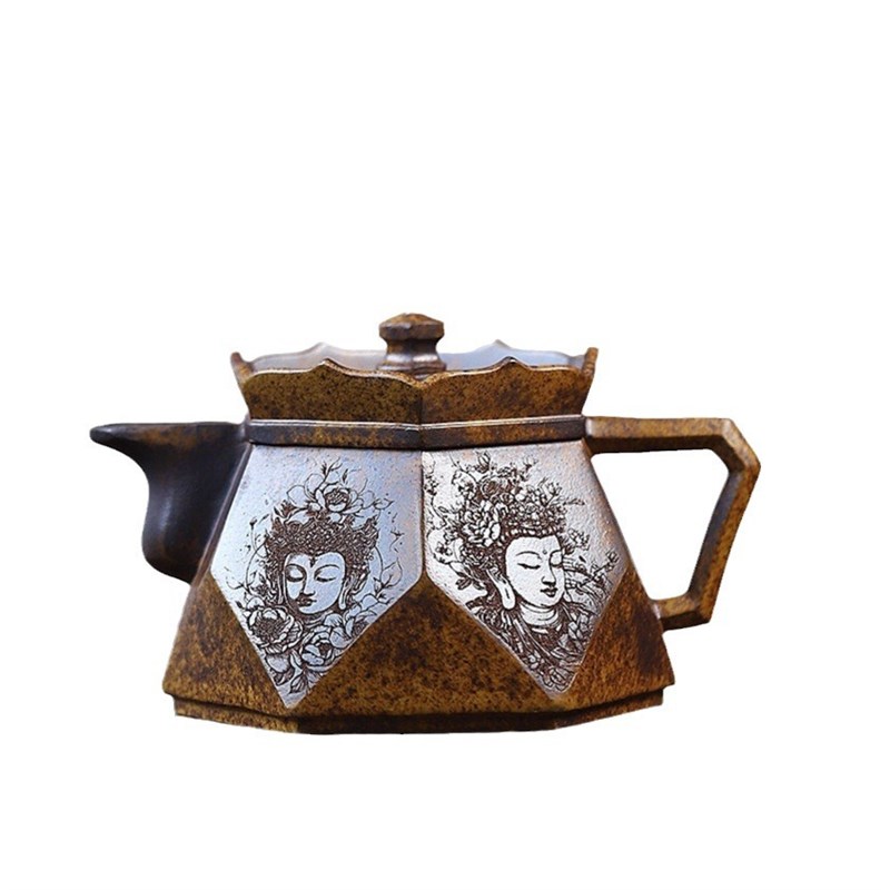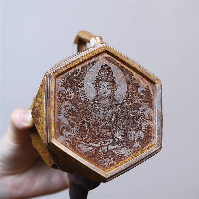 钻石僧帽手工刻画柴烧茶壶宜兴紫砂壶工堂直播供货源头茶具